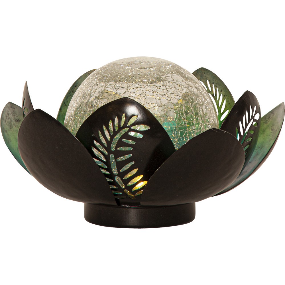 Den solcelledrevne dekorasjonen Lilly har kobberfargede metallblader med en stor amberfarget glasskule inni. Den er ca 24 cm i diameter og 12 cm høy. Den lyser med et gullfarget skinn gjennom glasskulen. Denne solcelledekorasjonen er fin å dekorere med i hagen eller på en balkong. Plasser belysningen der solen kan nå panelet i løpet av dagen for å få optimal lading til det medfølgende batteriet.
