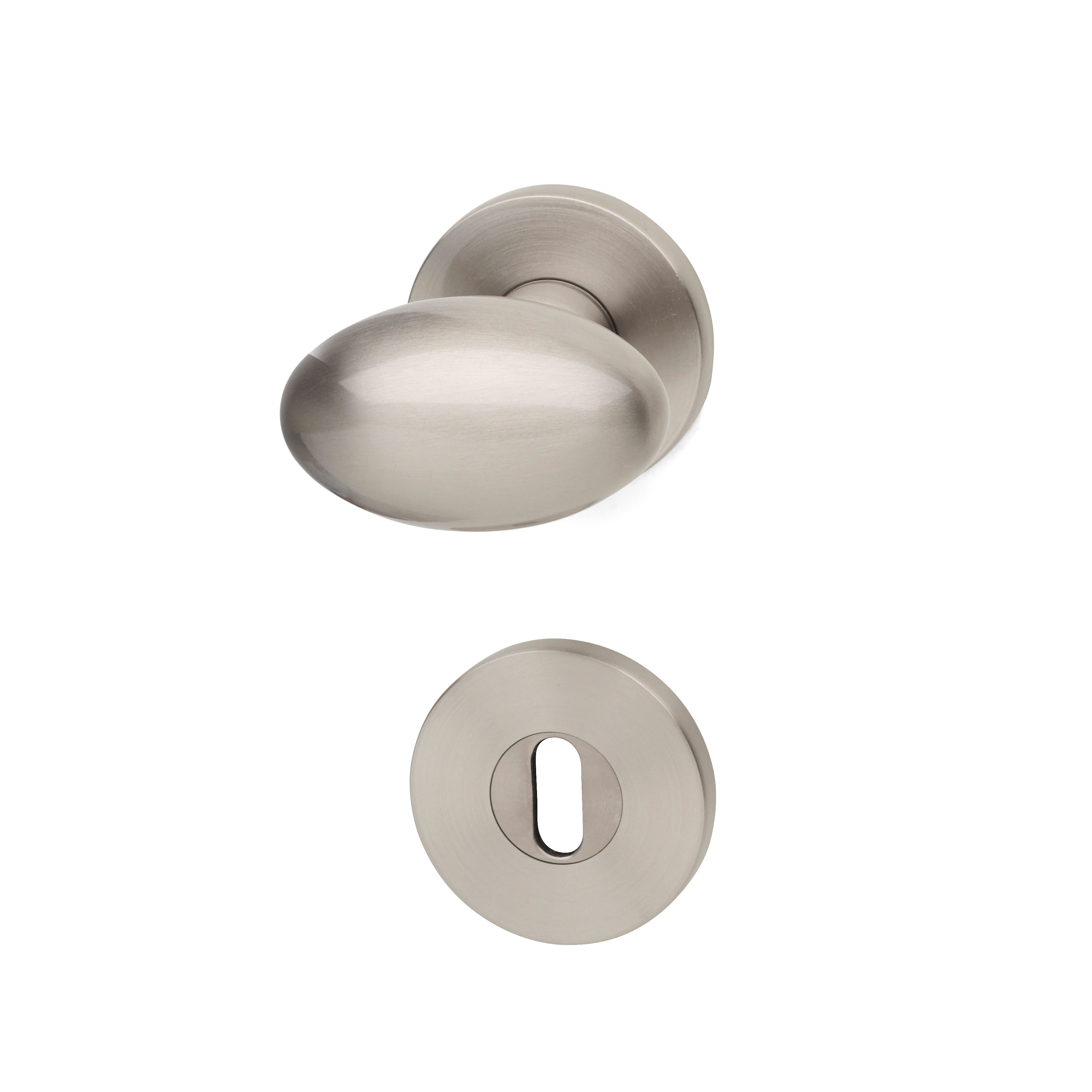 Innerdørvrider og nøkkelskilt av messing. Passer til dørtykkelse 38-42 mm. Utsprang: 67 mm.