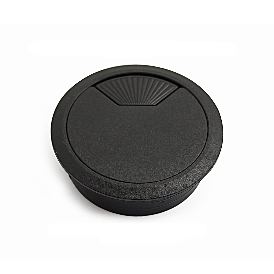 Kabelgjennomføring av plast, for nedsenking i bordplate. Utvendig diameter 71 mm. Hulldiameter 60 mm.