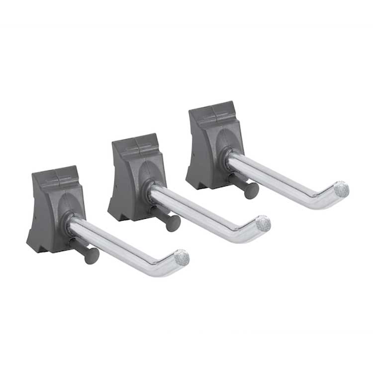 Rett krok for oppheng av diverse redskap. Klikkes på plass i Oppbevaringsskinne fra Elfa. Leveres i 3-pk.