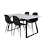 Matgruppen Venture Home Estelle 140 med 4 Pop Stoler er en moderne spisegruppe med et rektangulært spisebord i moderne design med understell i sort pulverlakkert metall og en bordplate i marmor. Det følger med fire spisestoler i moderne design med ben i sort pulverlakkert metall. Skålformet avrundet rygg og sete i helstøpt plast. Enkel montering kreves.