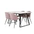 Spisegruppe Venture HomeEstelle 140 med 4 Valentina Stoler FløyelHvit Bord med Sort Bein, Rosa Stol med Sort Bein