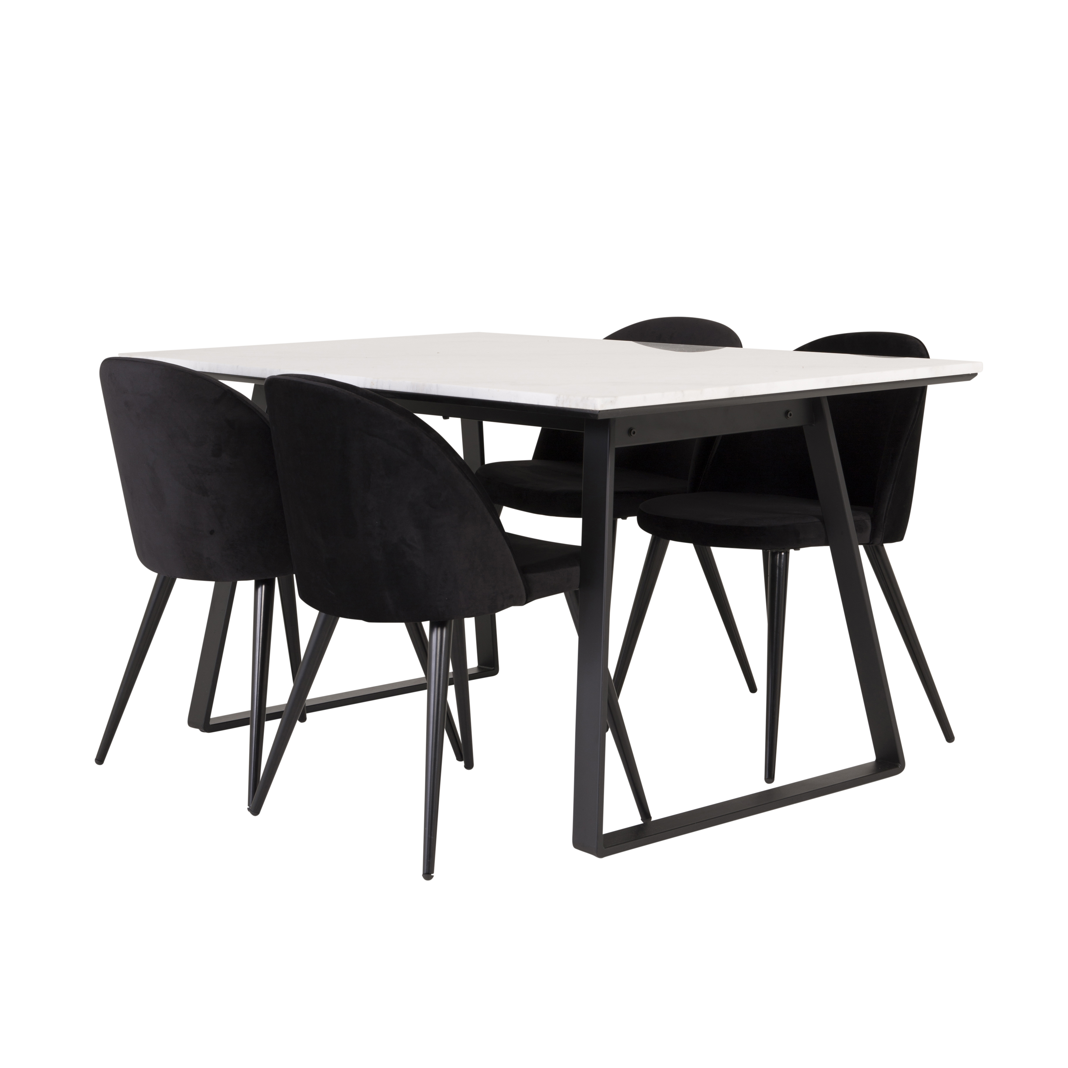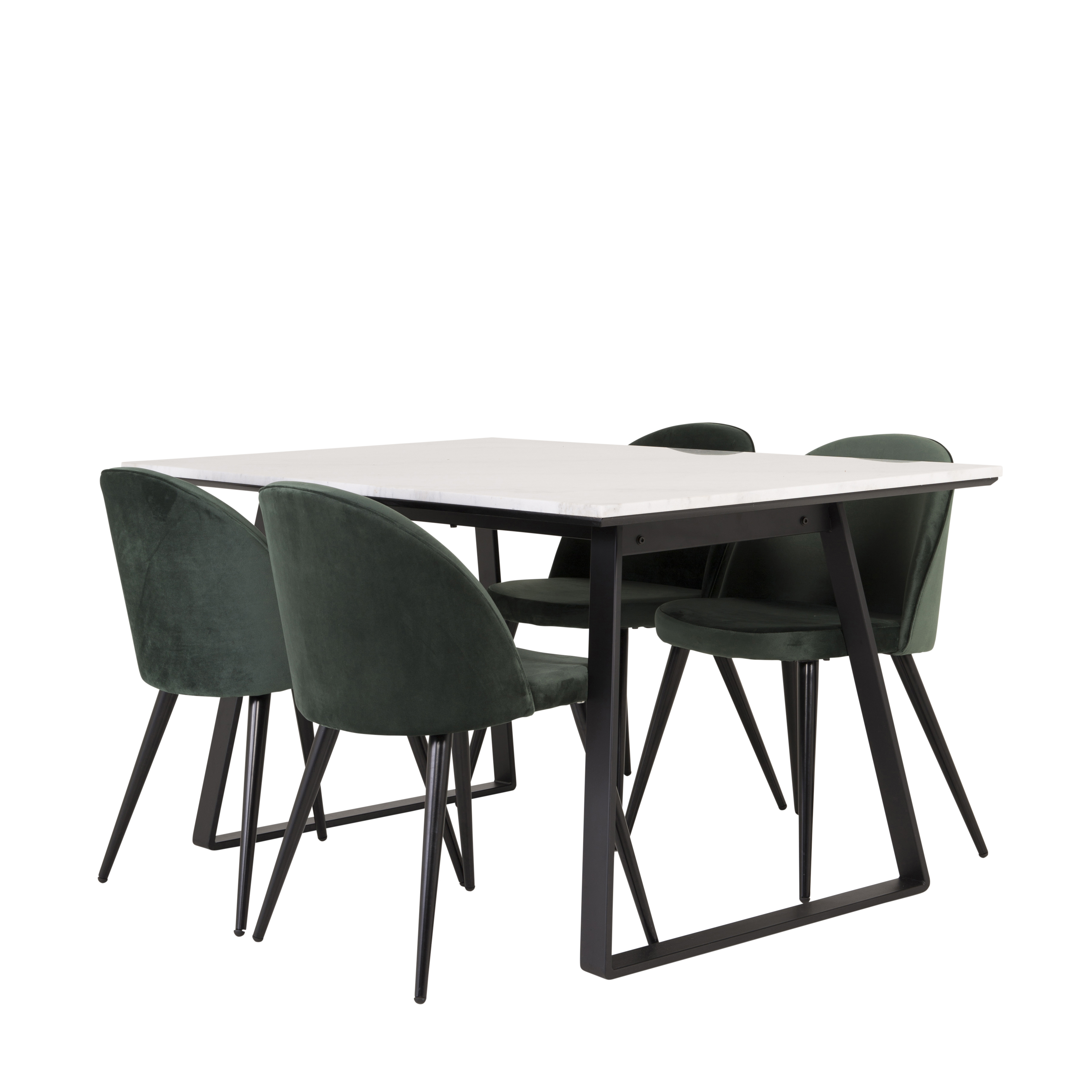 Venture Home Estelle spisegruppe med Valentina stoler er en elegant spisegruppe med et hvitt marmorbord og fire fløyelsstoler.