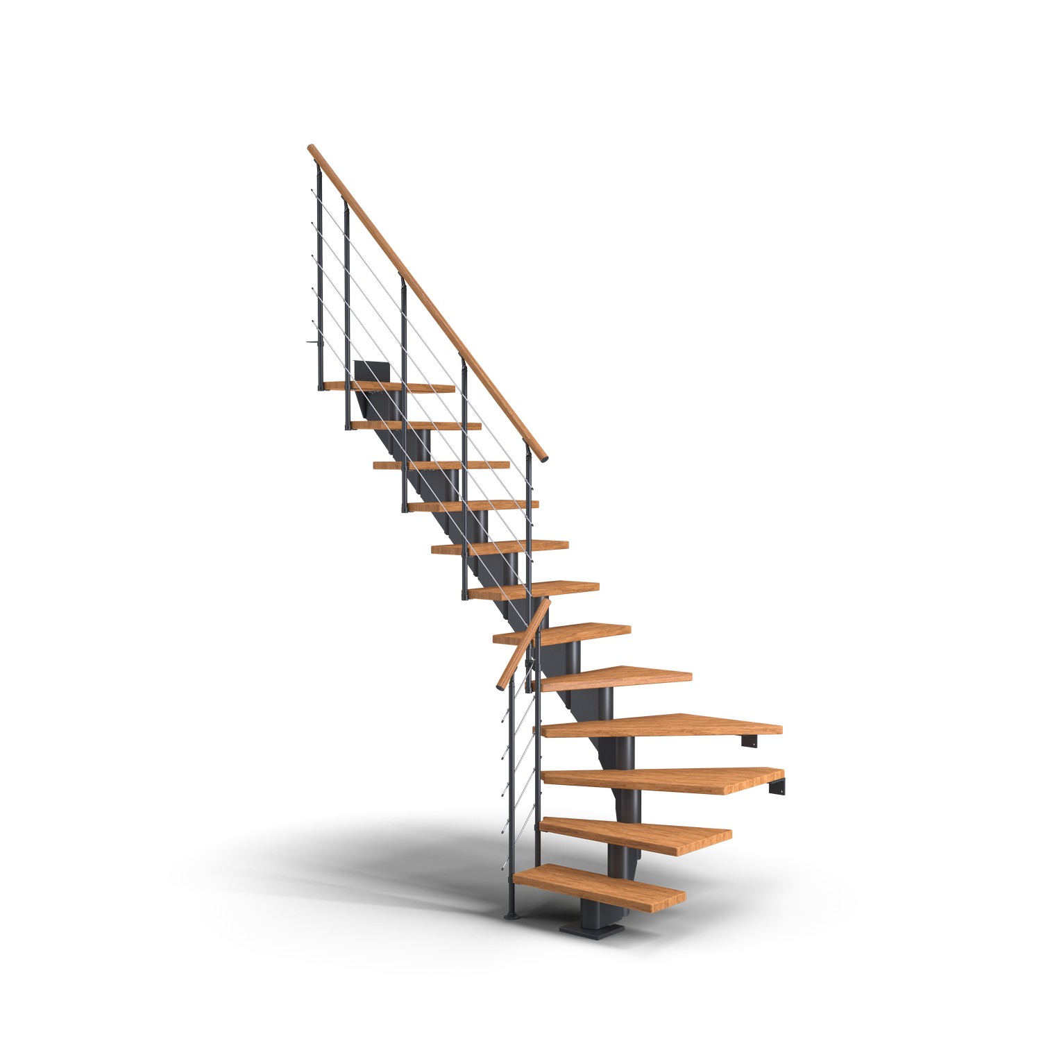 Trapperekkverk er pulverlakkert i samme moderne, halvblanke farger som stålkonstruksjonen og håndløperen er også laget av samme solide, oljebehandlede treverk som den trinntypen du velger. Enkelt, men likevel elegant.