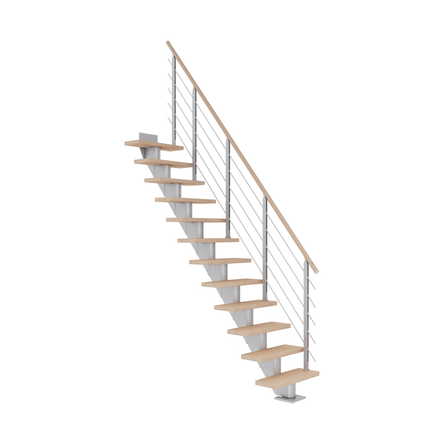 Gjennom å forme modultrappens struktur etter ditt rom, skapes det et unikt uttrykk. Opptil 13 trinn følger med, dette gir en maksimumshøyde gulv til gulv på 301 cm. Hvert trinn har en justerbar høyde mellom 18,5 og 21,5 cm. Veggbeslag følger med for å øke trappens stabilitet. Vær oppmerksom på at trappen krever etasjeskiller på minimum 20 cm.