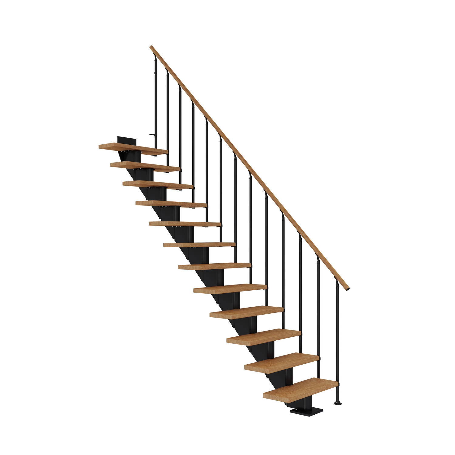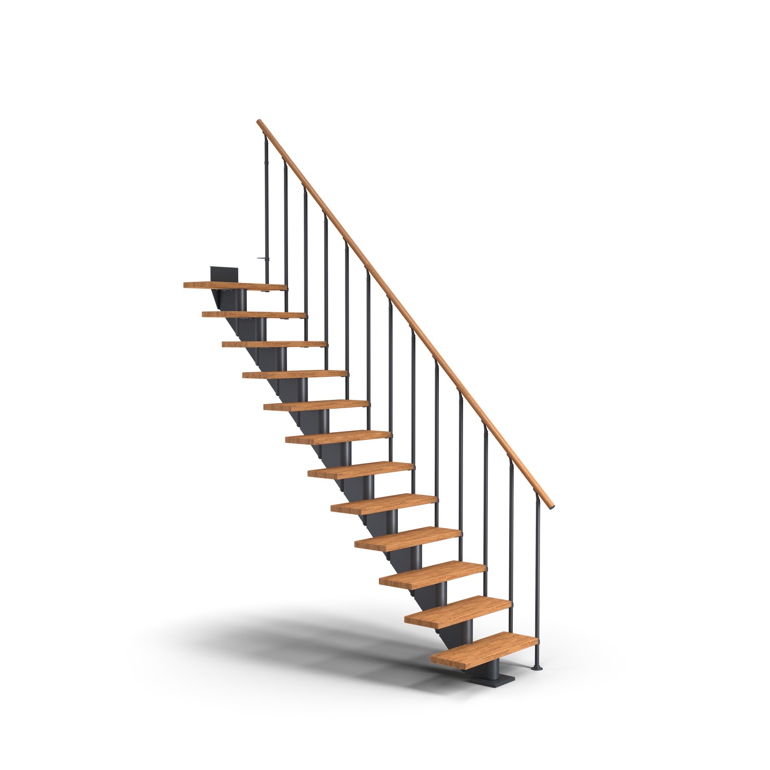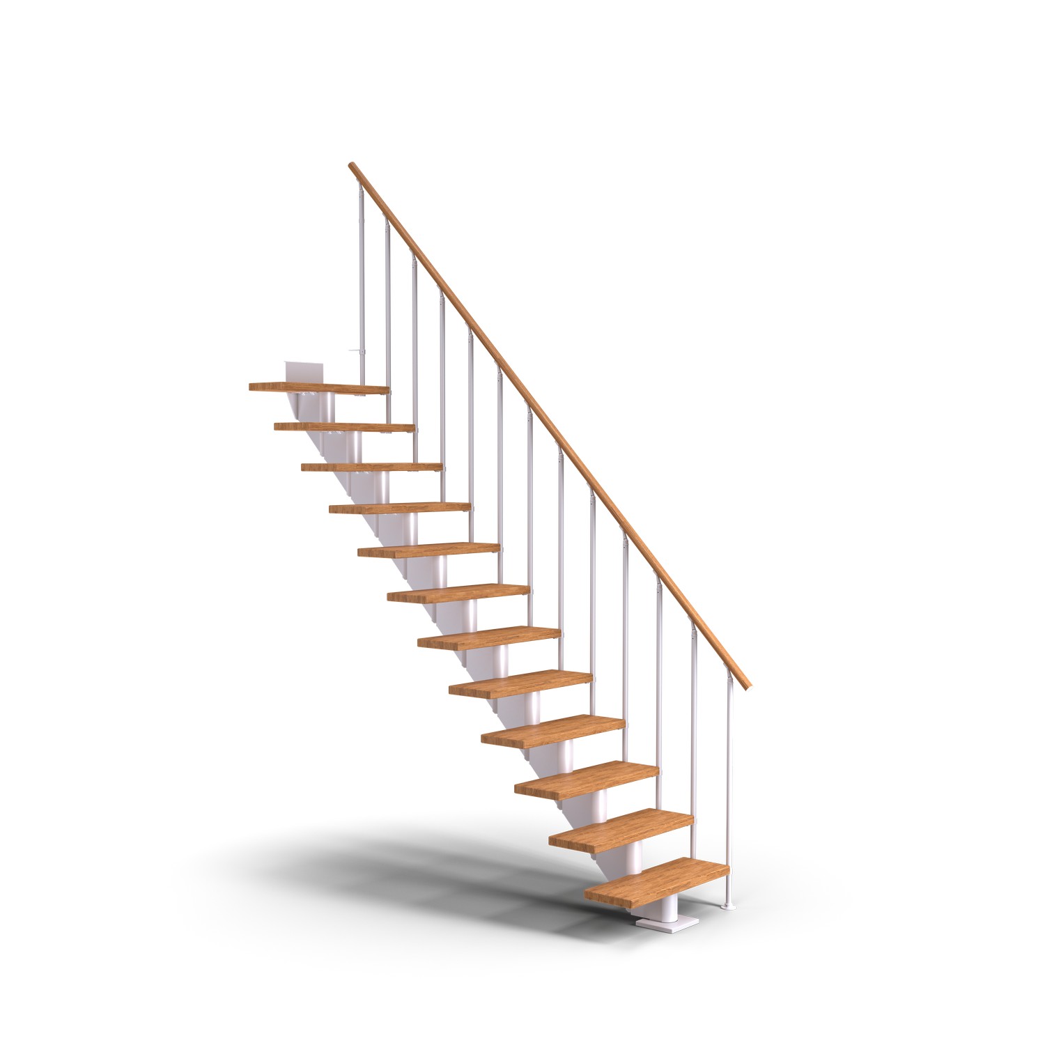 Trapperekkverk er pulverlakkert i samme moderne, halvblanke farger som stålkonstruksjonen og håndløperen er også laget av samme solide, oljebehandlede treverk som den trinntypen du velger. Enkelt, men likevel elegant.