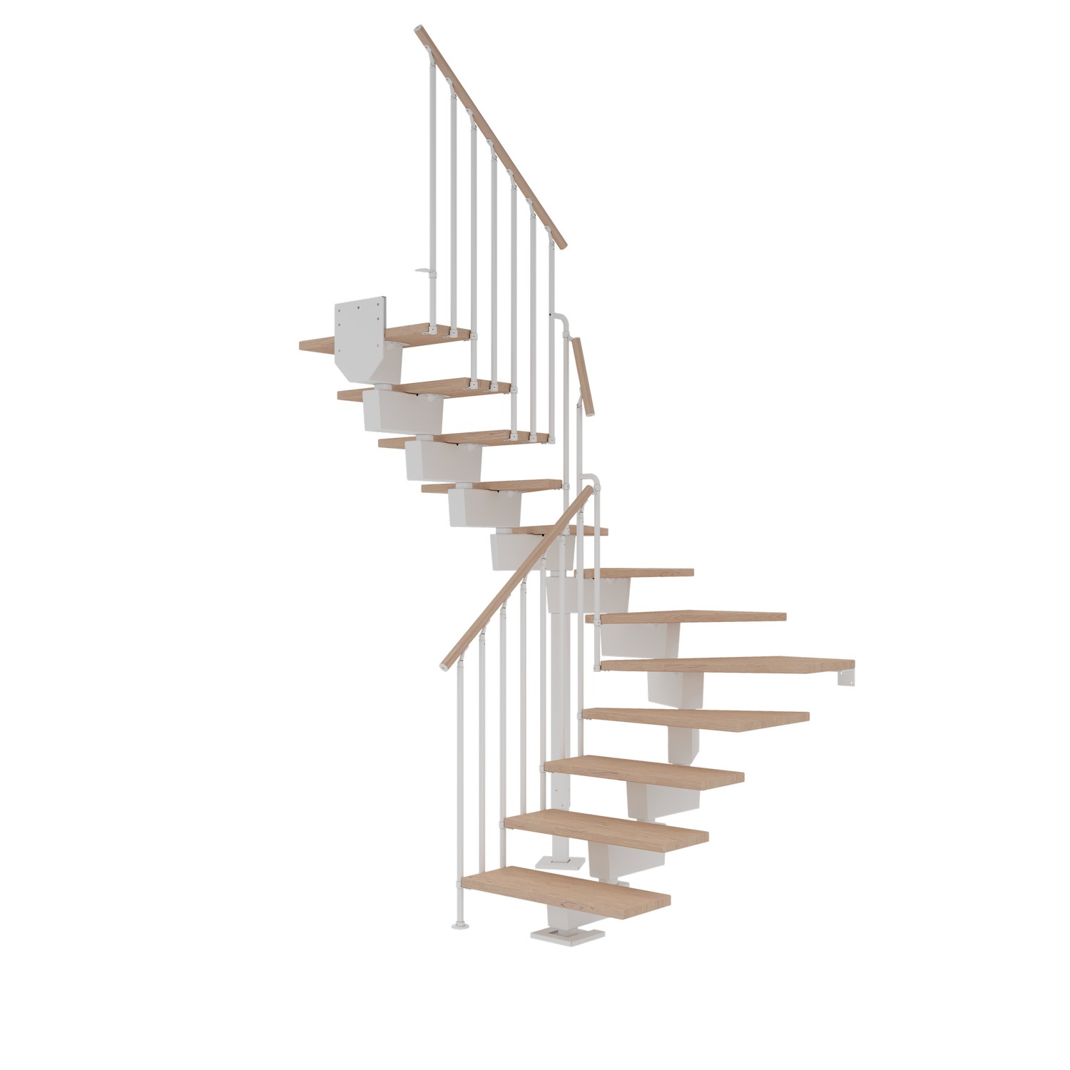 Hovedtrapp DolleDubai Eik Hvitoljet 1/2-Sving Classic IIIPearl Grey, Maks Takhøyde: 2040-2520 mm,Antall Trinn: 11 stk