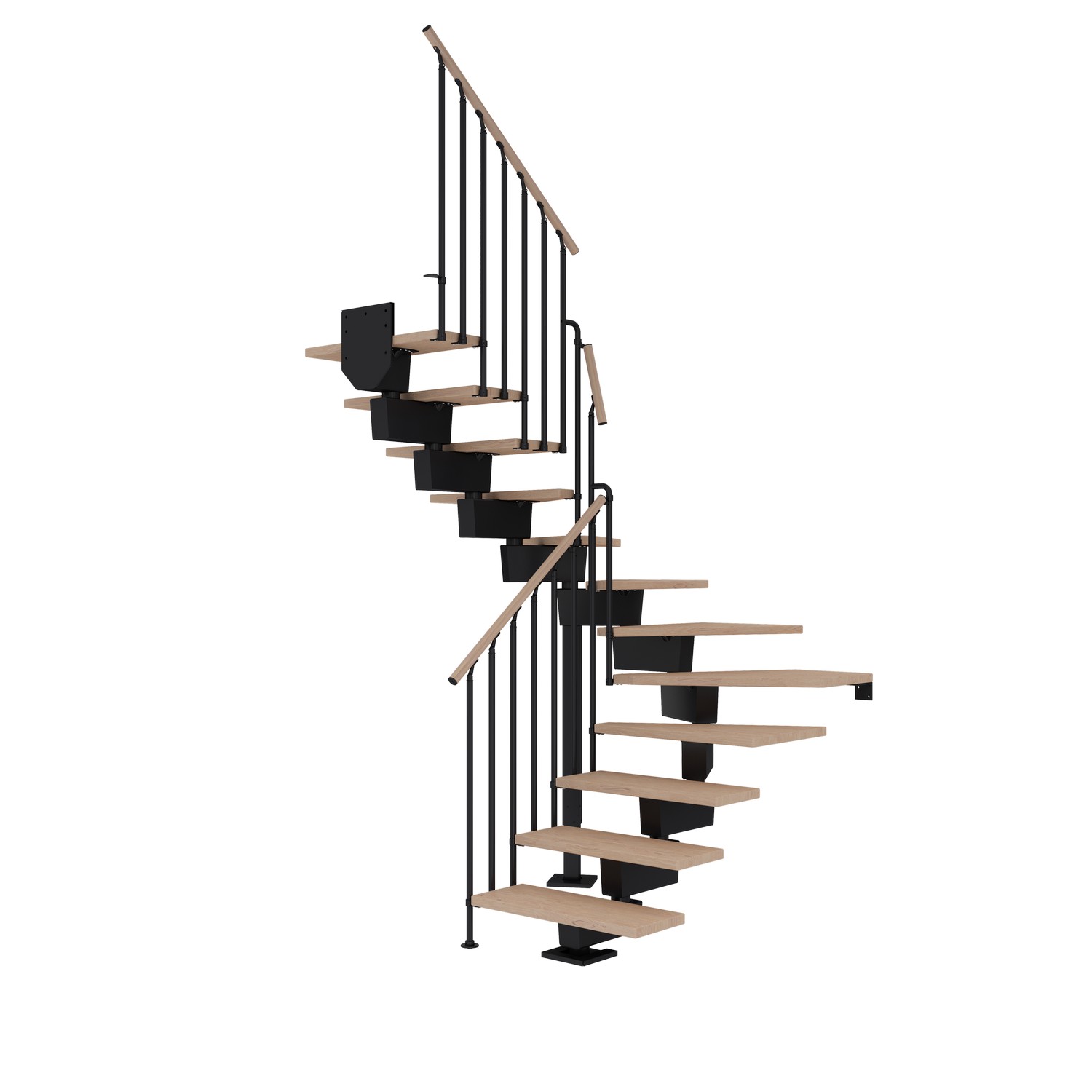 Trappen krever en etasjeskiller på minimum 20 cm og håndløperen leveres i lengder á 150 cm.
