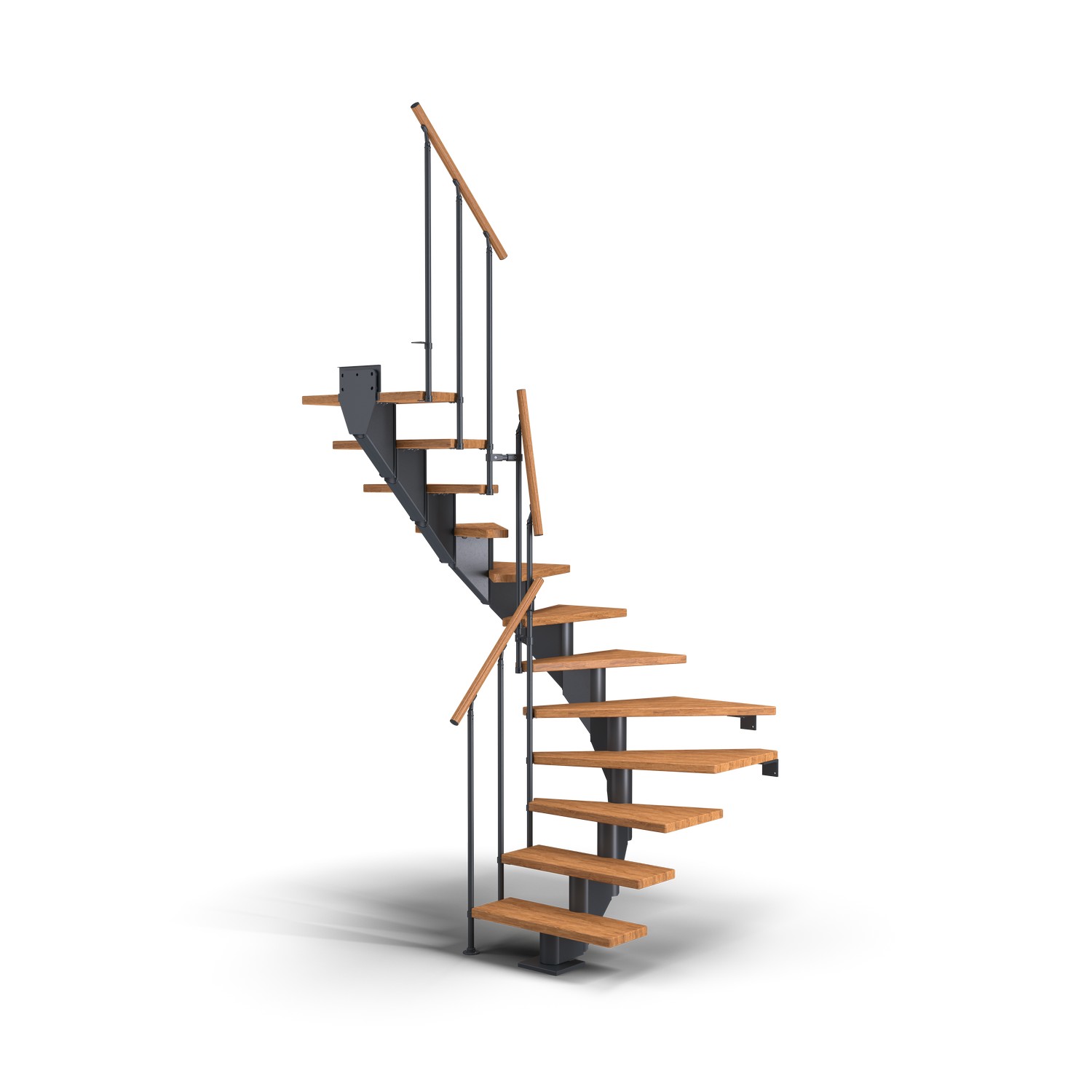 Trapperekkverk er pulverlakkert i samme moderne, halvblanke farger som stålkonstruksjonen og håndløperen er også laget av samme solide, oljebehandlede treverk som den trinntypen du velger. Enkelt, men likevel elegant.