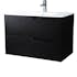 Med sine sporlagde skuffefronter og integrerte håndtak gir den et harmonisk inntrykk og passer inn i de fleste hjem.Skapet leveres med en servant i porselen. Servanten er stilren, lett å vedlikeholde.