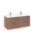 Servantskap Macro Design Crown Stripe er et svenskprodusert møbel med massiv eikefiner innfelt i en gjennomfarget svart MDF-plate. Kantlistet og forseglet overflate med en hvitpigmentert klarlakk og integrert svart håndtak. Servantskapet leveres med et servant i sanitærporselen med doble vasker.