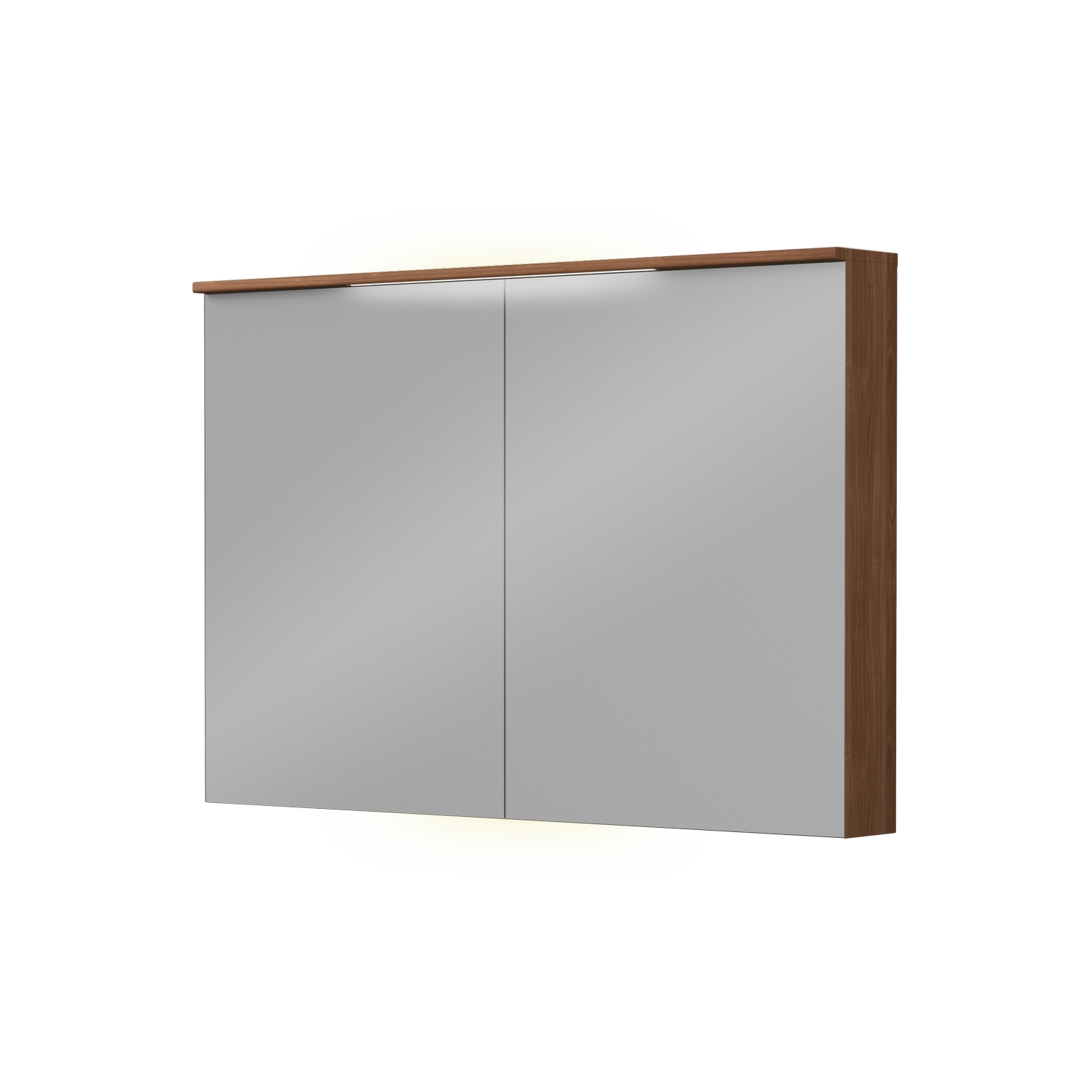 Speilskap i 12 cm dybde med underlys, multiboks med spott og stikk og to glasshyller. Inkludert lystopp dybde 16 cm med innfelt LEDlys med overlys. Lyset i skapet slås på når døren åpnes. Speildørene er myktlukkende med to-sidig speilflate.