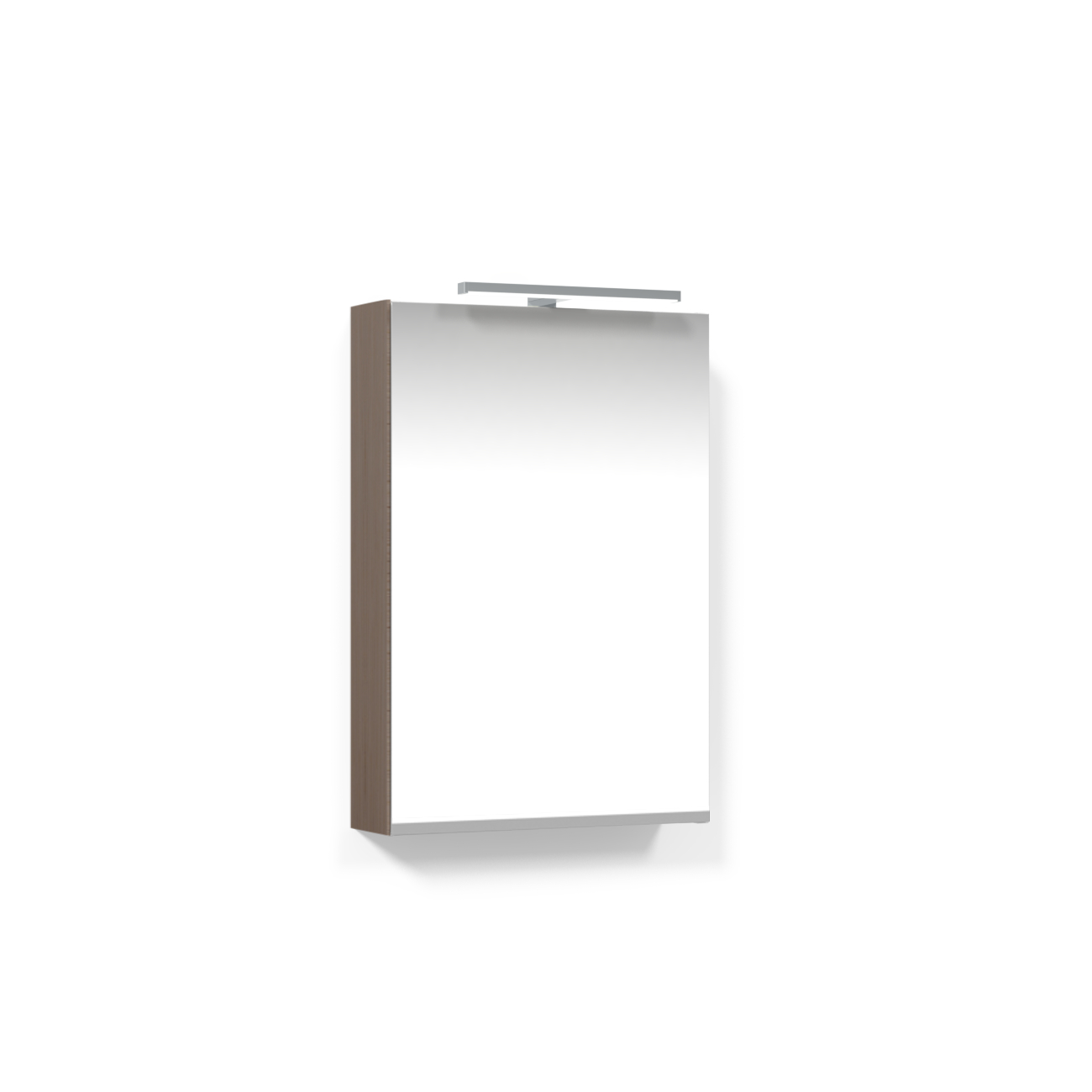 Speilskap Macro Design Crown med T-belysning er et stilrent speilskap med belysning og stikkontakt. Alle speilskap har en delt hylleavdeling for høye produkter og en diskret plassert stikkontakt.