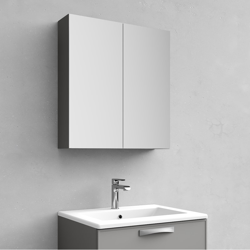 Speilskap Noro Flex er et elegant baderomsskap med speil på innsiden og utsiden av dørene. Speilskapet har innvendige hyller i klart glass og myktstengende skjulte hengsler. Kompletter ditt speilskap med belysning og el-uttak.