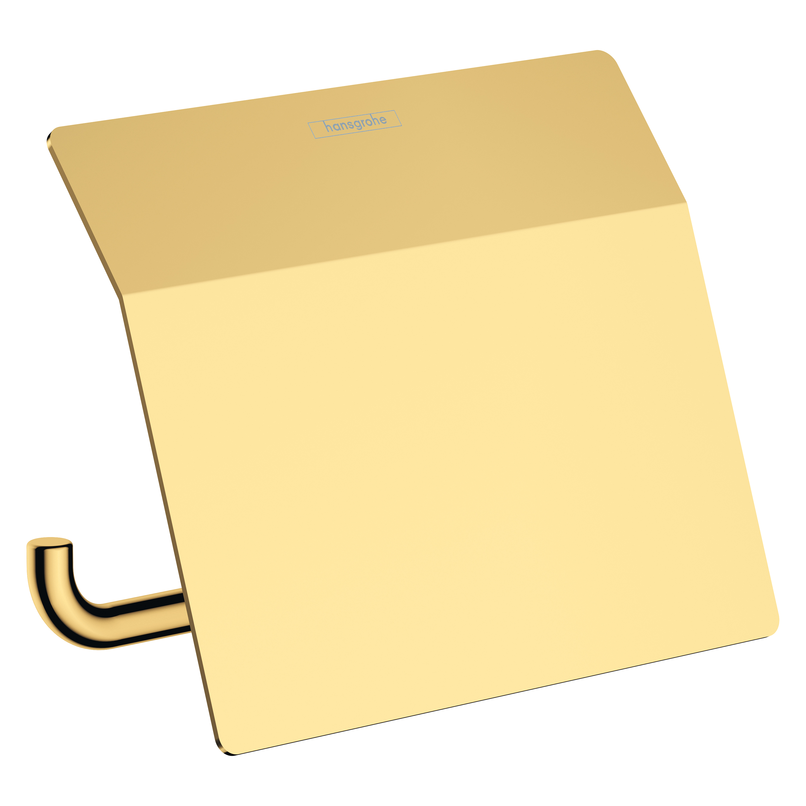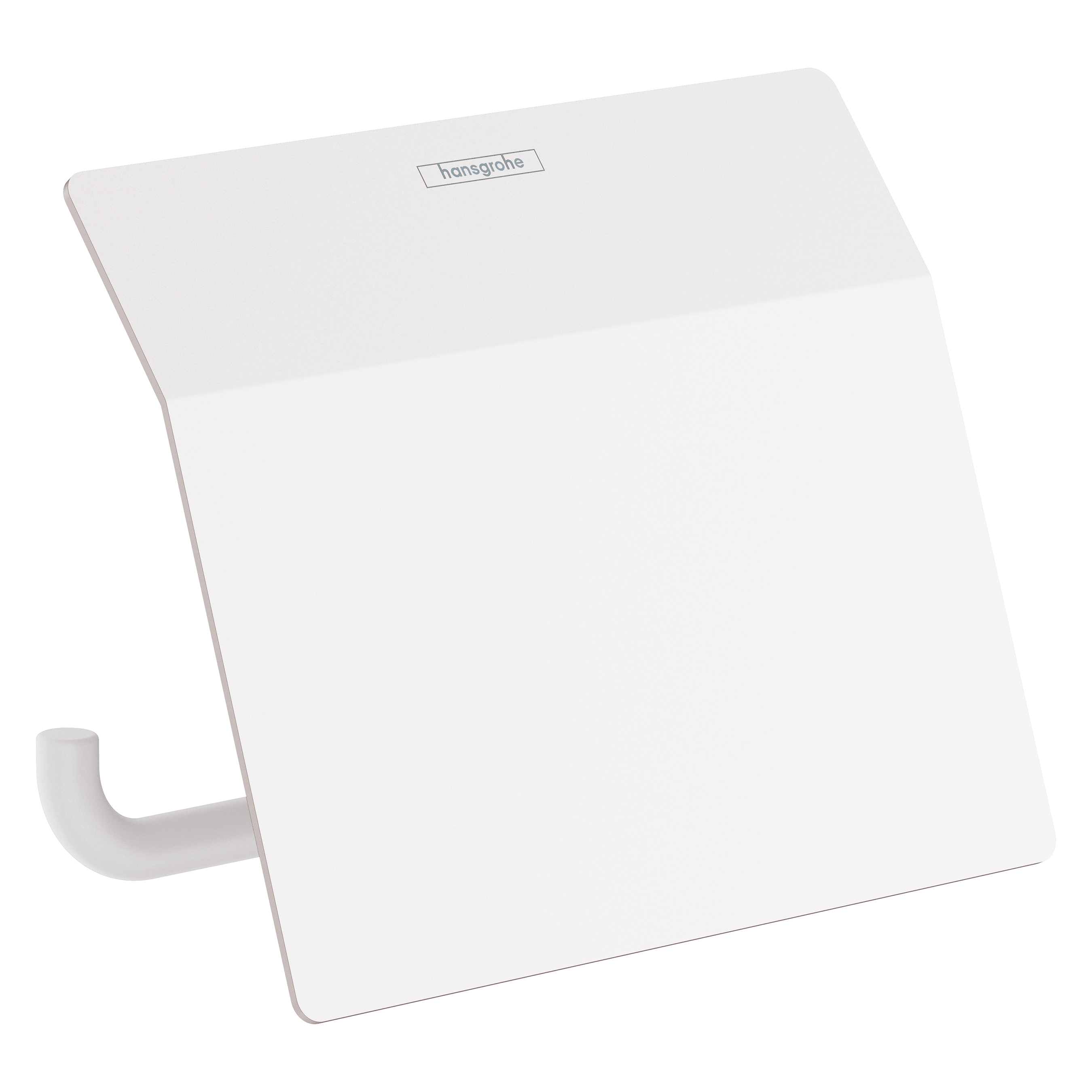 Toalettpapirholderen Hansgrohe AddStoris 41753 med lokk har et stilrent design som passer til alle moderne bad, i metall.