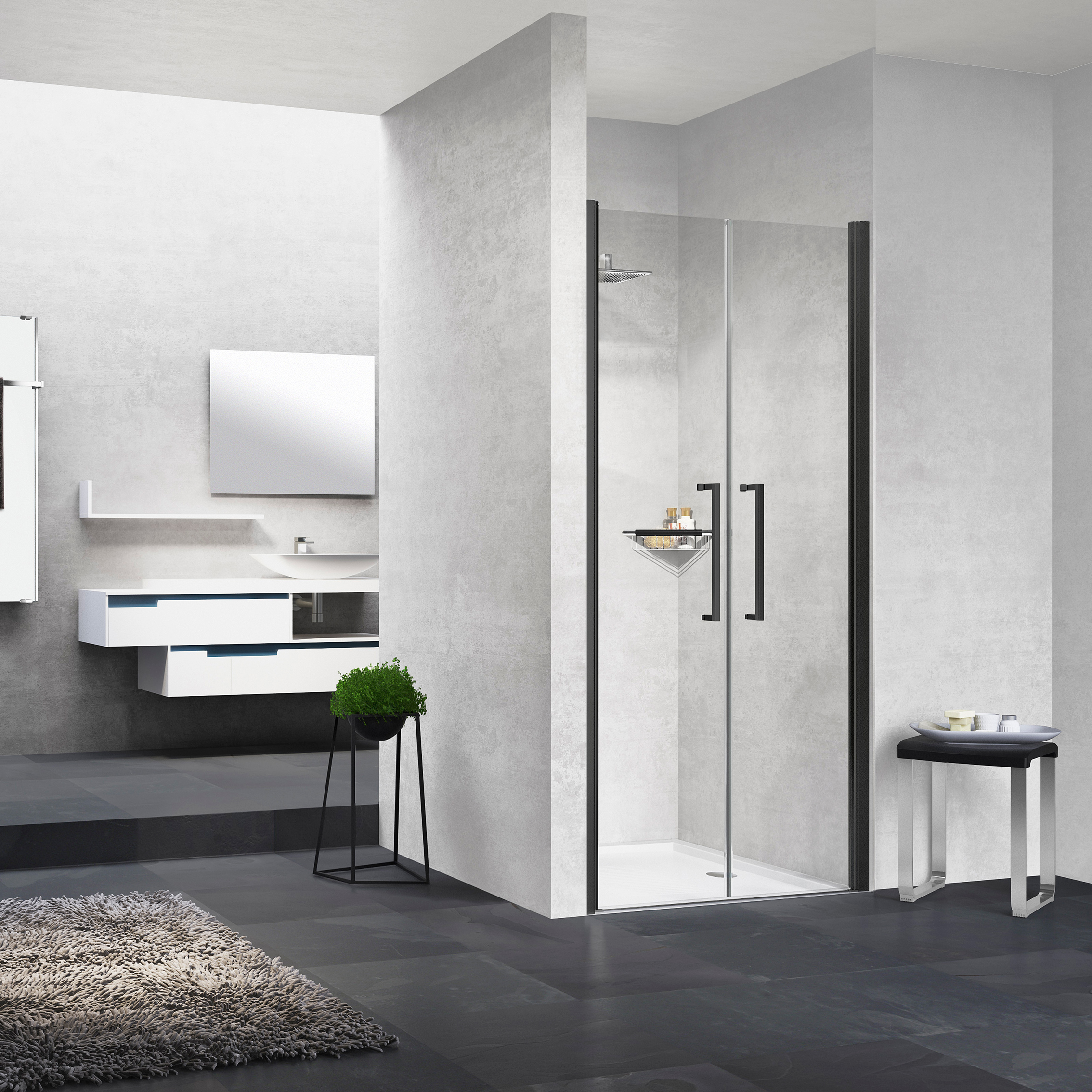 - Saloondører for montering i nisje (mellom to faste vegger). Eller montering med sidefastfelt for å lage et komplett hjørne. For hjørnemontering er maks størrelse 1500 mm.