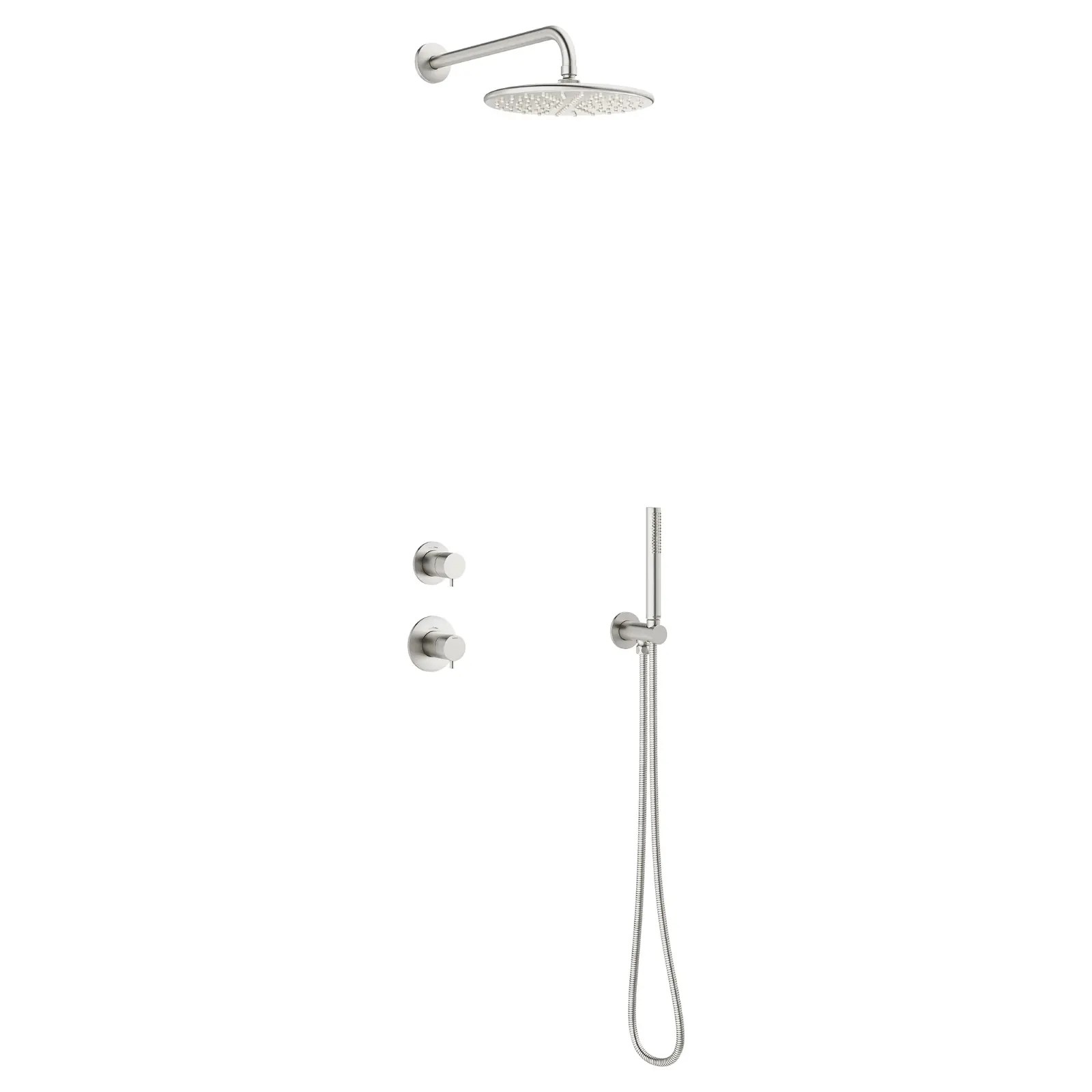 Termostat og vender er montert på rosetter som gir en minimalistisk, men eksklusiv følelse på badet, og tar opp mindre plass enn innbygging med plate. Takdusjhode og hånddusjen har rub-clean som sørger for at du enkelt kan rengjøre dusjhodene og oppretteholde en god dusjstråle kun ved å dra fingeren over. Med veggmontert dusjarm til takdusjen. Utforsk Silhouet-serien for produkter i samme overflate for en gjennomført stil.
