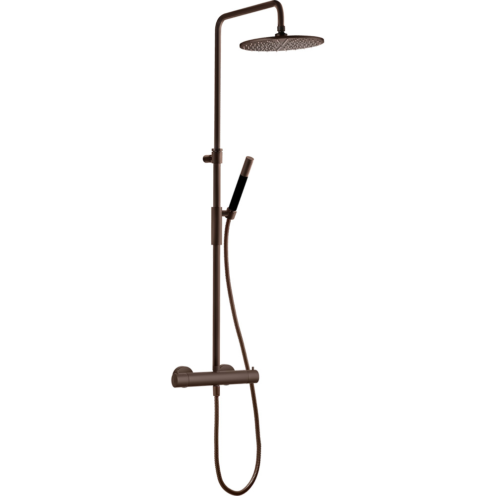 Pakken inneholder en trykkbalansert to-grepstermostatblander med omkaster i vribryteren for å enkelt skifte mellom hånd- og takdusj. Termostatfunksjonen sikrer at vannet holder en konstant temperatur under dusjing.