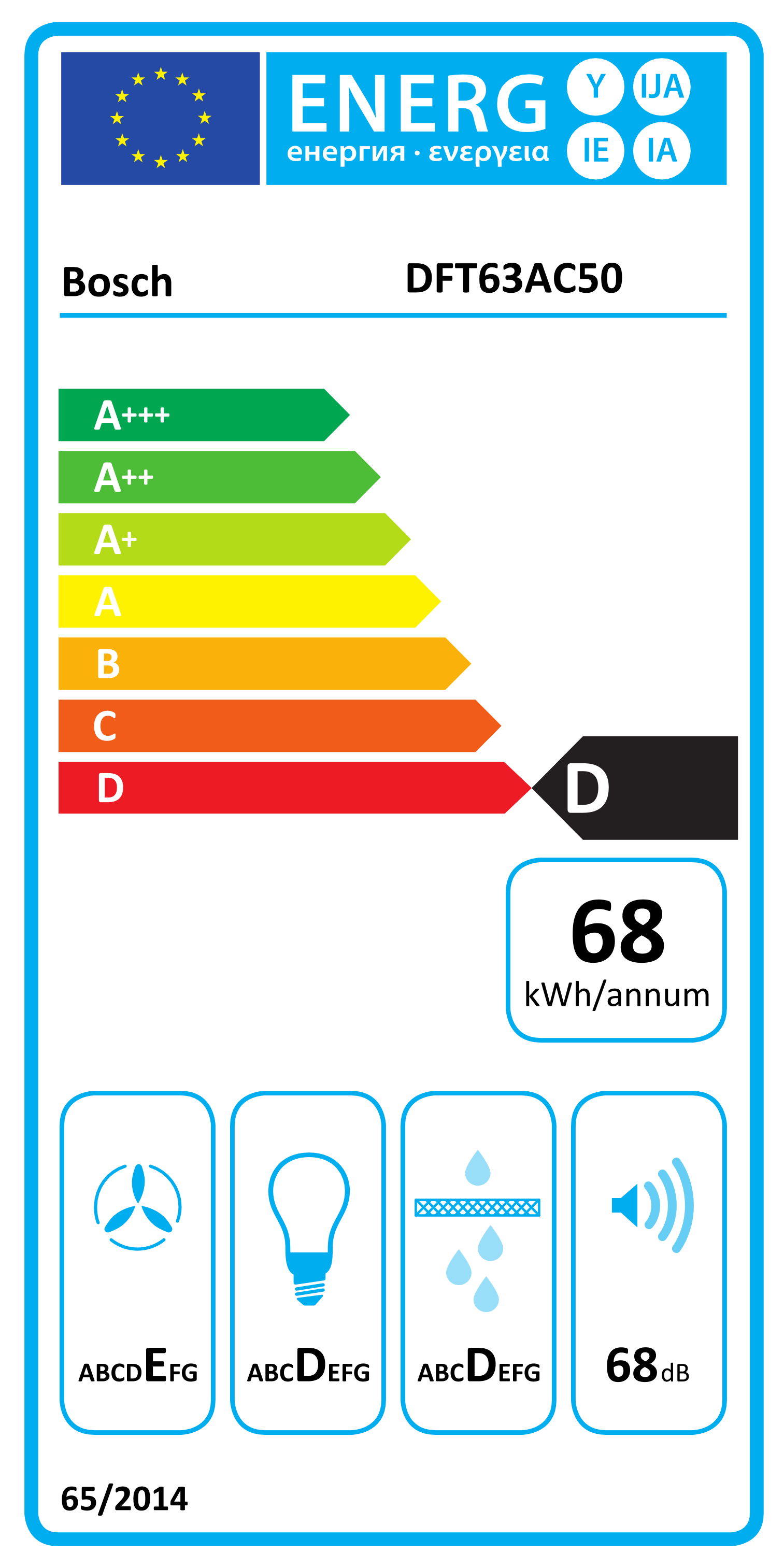 | Effektivitetsklasse Fettfiltrering | D |