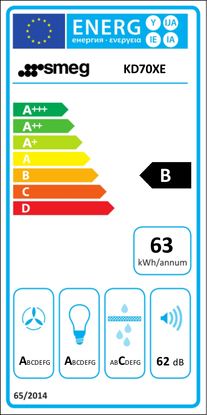 - Årlig energiforbruk (AEChood): 63 kWh/a