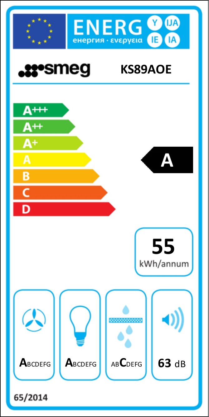 Kjøkkenviften Smeg Colonial KS89 er en 90 cm viftehette for veggmontering. Viften har 1 høyeffektiv motor, 4 hastigheter, inkludert intensivmodus, 2 LED-lamper og 3 fettfiltre i rustfritt stål som tåler maskinvask.