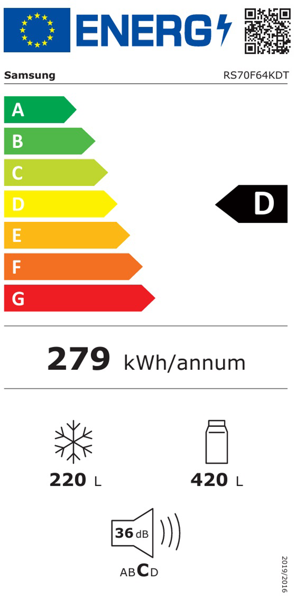 Samsung RS70F64KDTEF er et romslig og energieffektivt kjøleskap og fryseskap i Side by Side-design som kombinerer moderne teknologi med en stilig sølvfinish. Med avanserte funksjoner som AI Energy Mode, innebygd Wi-Fi og SpaceMax-teknologi, skapes en smart og praktisk løsning for matoppbevaring i det moderne kjøkkenet.