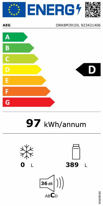 AEG 8000 frittstående kjøleskap er energiklassifisert som D og har et lavt energiforbruk på bare 97 kWh per år. Kompressoren kommer dessuten med en 10-års garanti for ekstra trygghet.