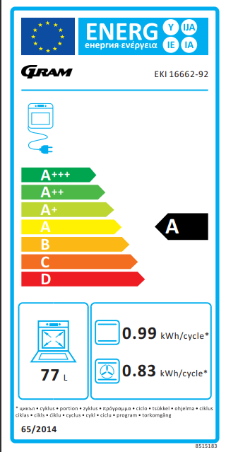 Energibruk for oppvarmingsfunksjon, standardtest, tradisjonell/multifunksjon (watt): 0,99/0,83