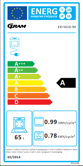 Energibruk for oppvarmingsfunksjon, standardtest, tradisjonell/multifunksjon (watt): 0,99/0,78