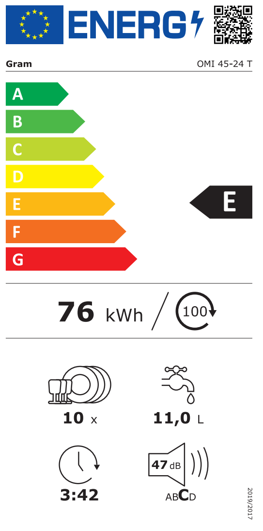 Energiforbruk for 100 vasker i kWh (EU_2021_EP): 76