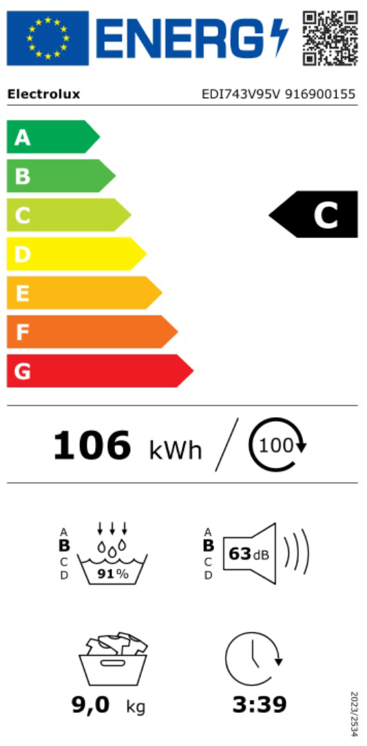Varmepumpetørketrommel ElectroluxEDI743V95V