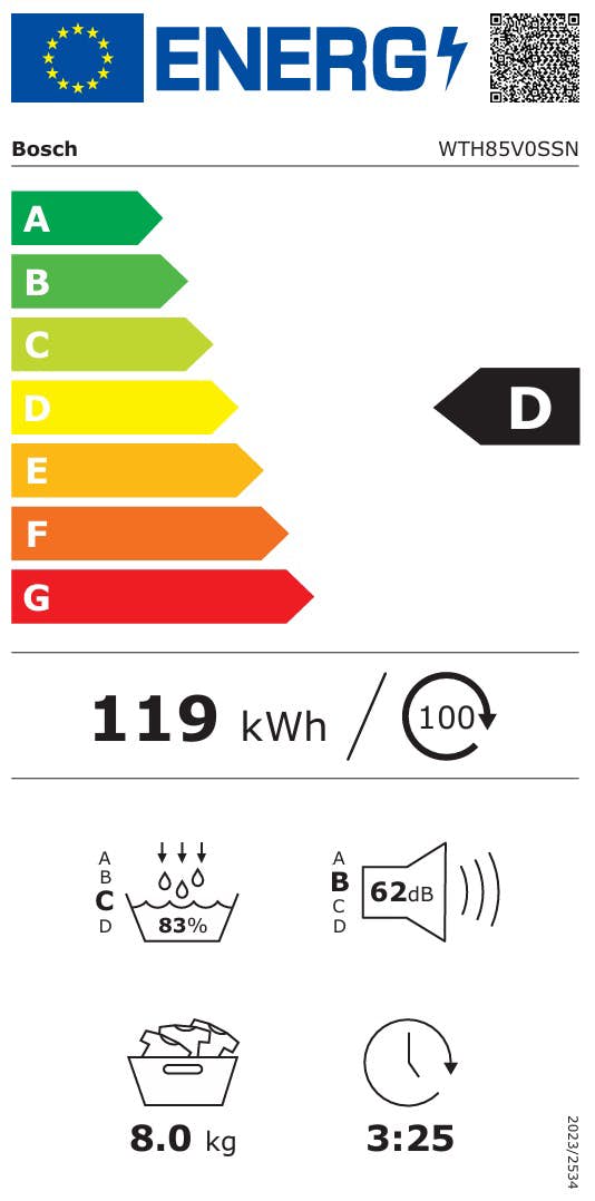 VarmepumpetrommelBOSCH Serie 4 WTH85V0SSN Hvit Energivennlig