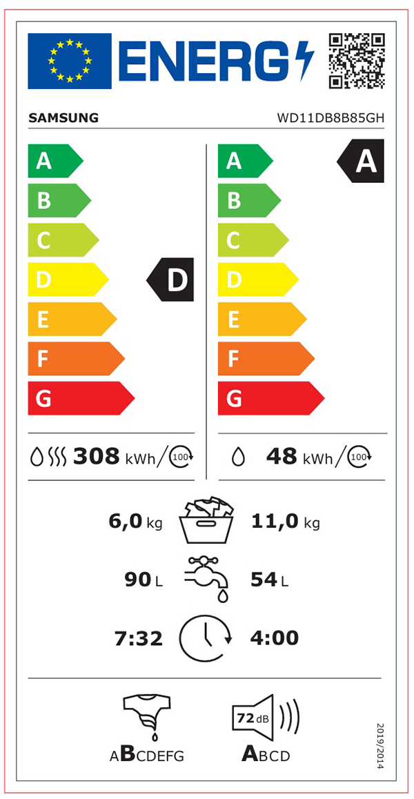 Samsung WD11DB8B85GHU3 Kombinert Vask/Tørk