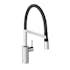 En allsidig kjøkkenkran med en fleksibel sort slange som gir deg frihet til å manøvrere rundt på kjøkkenet. Med en svingbegrensning på 120 grader gir den deg optimal kontroll og bevegelighet. Du kan enkelt velge mellom en vanlig stråle og en avslappende dusjstråle, mens den imponerende vannkapasiteten på 8 liter per minutt sikrer rikelig med vann. Kaldstartfunksjonen legger til ekstra brukervennlighet, og den krombelagte utførelsen gir et stilrent utseende til kjøkkenet ditt.
