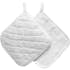 Kvadratiske grytelapper av 100 % bomull, som er quilted på den ene siden. Er med kantbånd og opphengsnor
