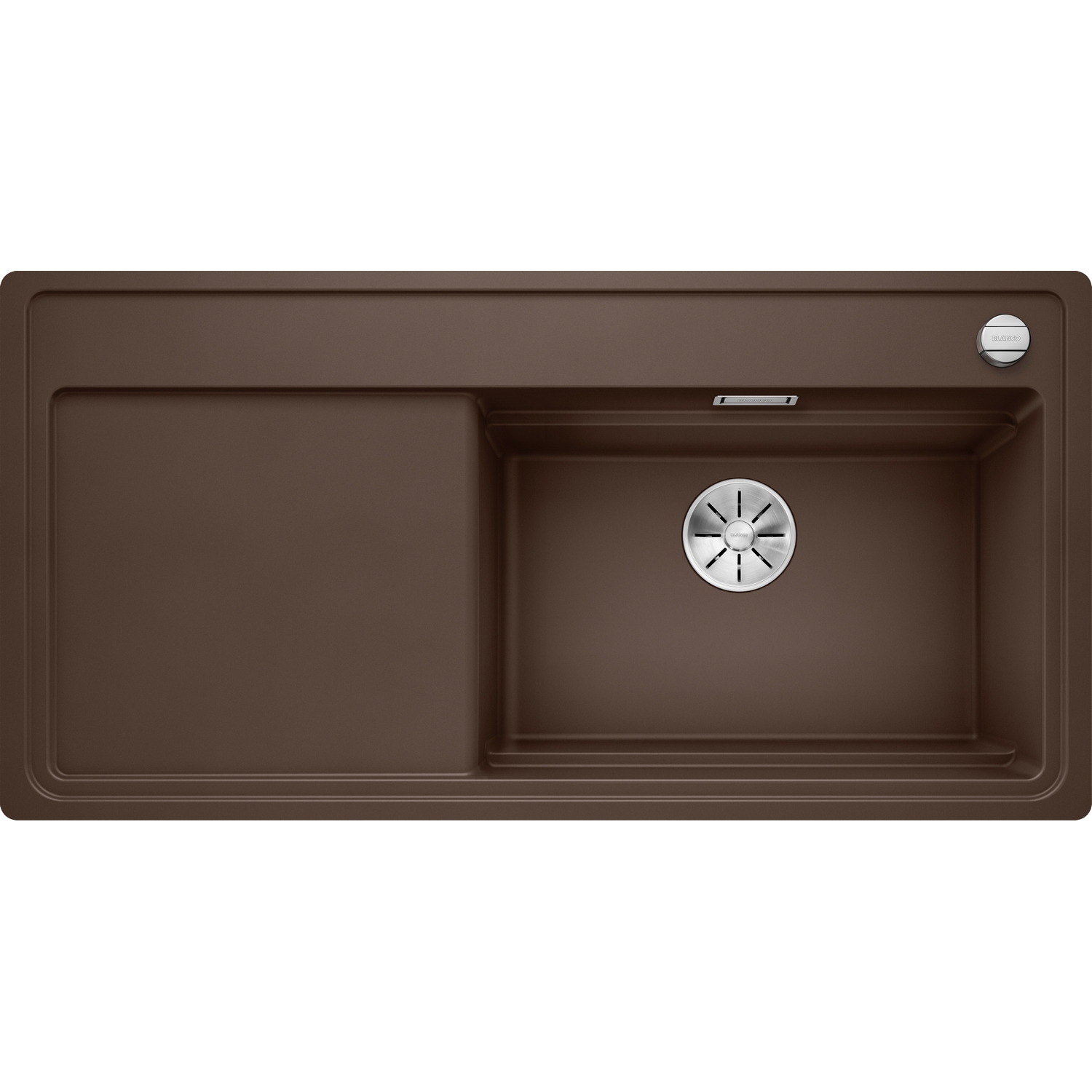 Dette er en multifunksjons kjøkkenvask med gjennomtenkt design og praktiske tilbehør. Kjøkkenvasken har en stor vask med romslig avrenningsområde i stilig utforming. Styring av kurvventilens åpning og lukking ovenfra benken slik at du slipper å stikke hendene i oppvaskvannet når du er ferdig med å vaske opp. I tillegg har kjøkkenvasken Blancos patenterte InFino-avløpssystem.