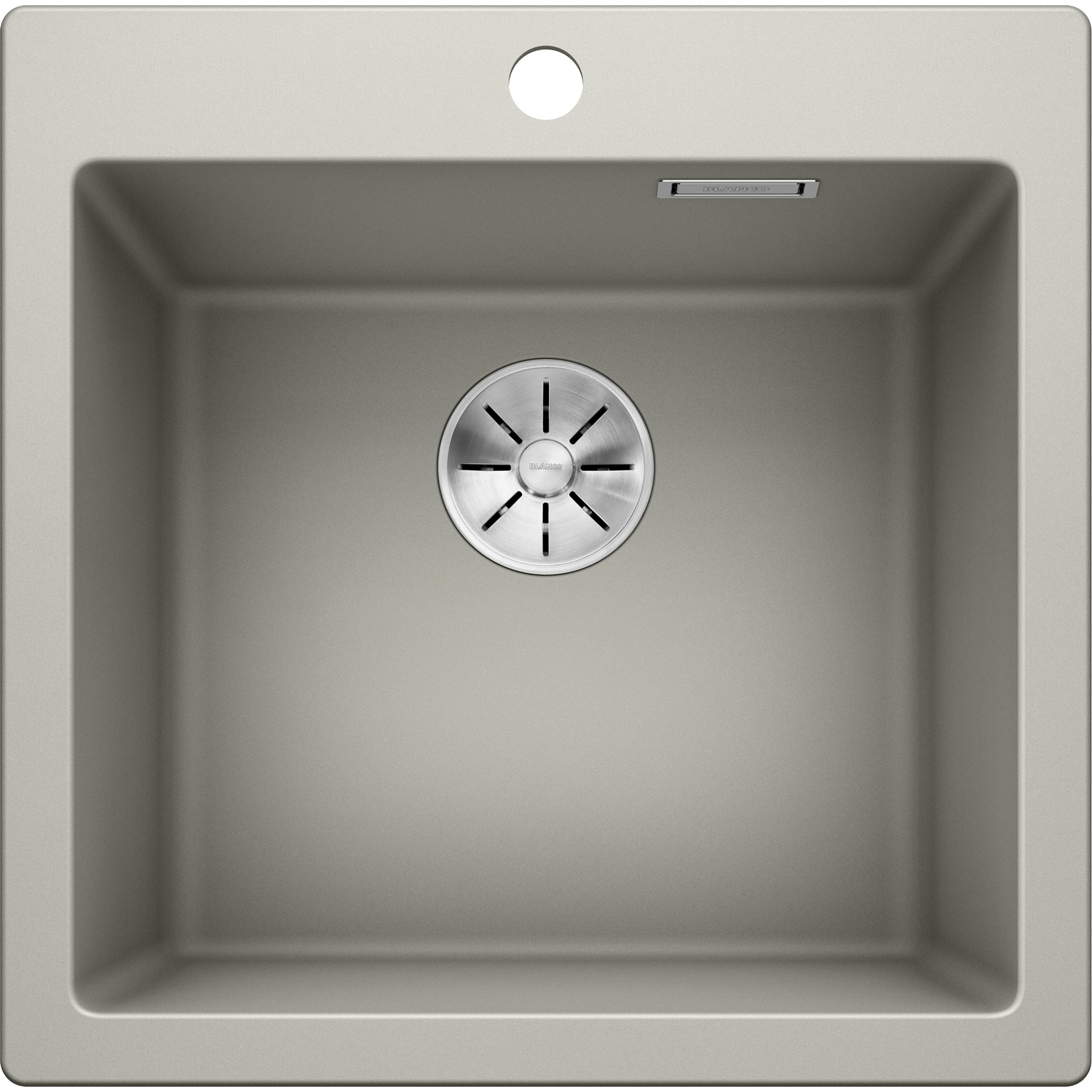 Blanco Pleon 5 Silgranit InFino er en kjøkkenvask i tidløst design med rene linjer. Det er en ekstra dyp kjøkkenvask med en smal gjennomgående bakpanel med forborret hull for blandebatteri. kjøkkenvasken har dessuten et bredt avløp og det patenterte InFino-avrenningssystemet med elegant utformet kurvventil.