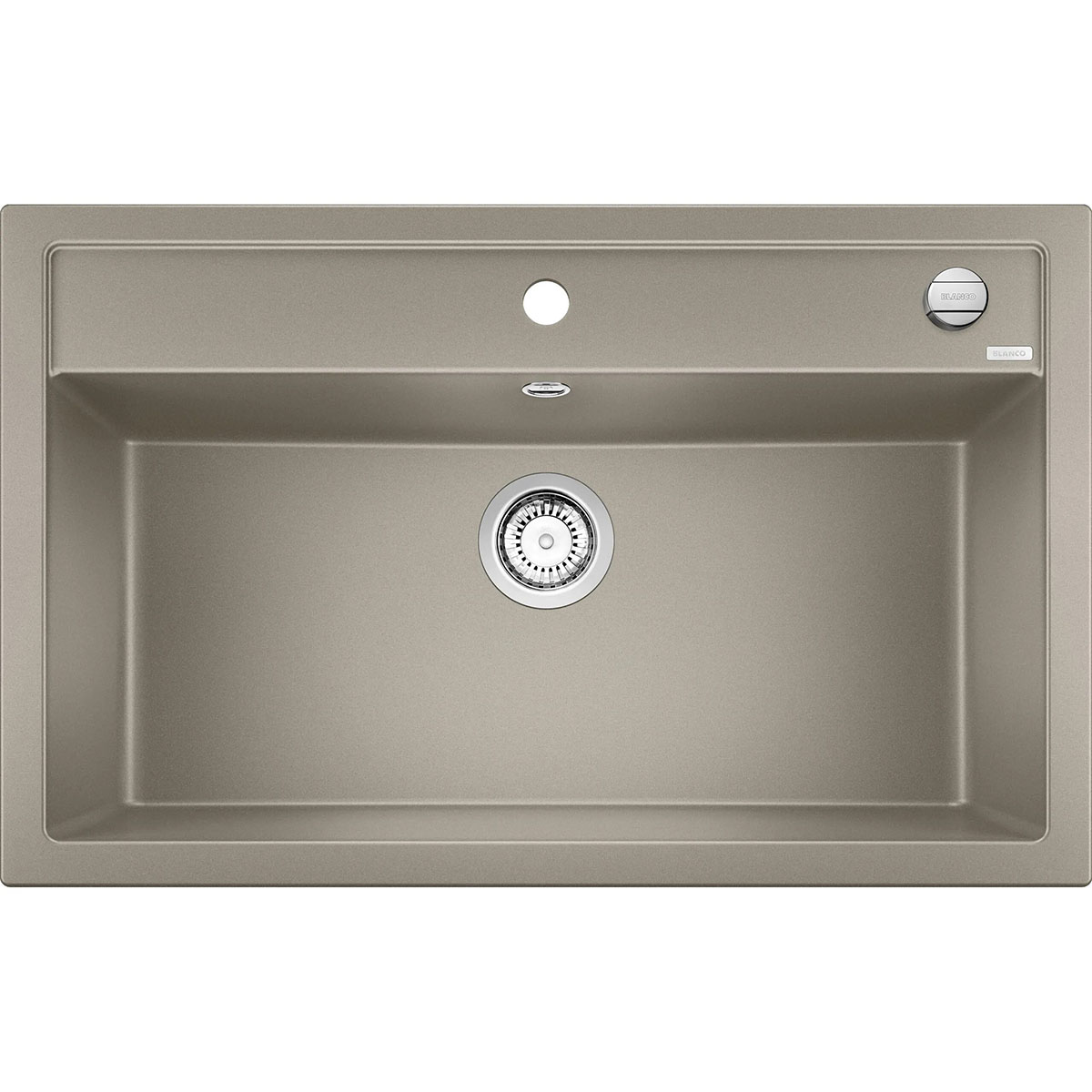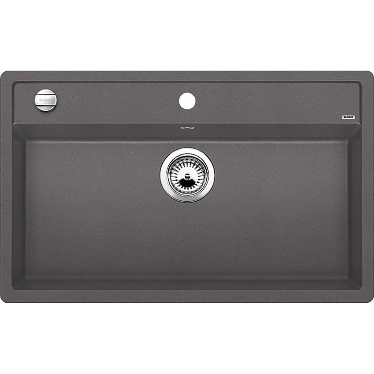Blanco Dalago er en stilren kjøkkenvask med bredere bakside fra Blanco. Vasken har en 3½" avløp med kurvventil og eksenter. Blanco Dalago har et forhåndsboret blandehull som kan suppleres med en stilren kjøkkenkran i en SILGRANIT-look-utførelse i perfekt fargekombinasjon.