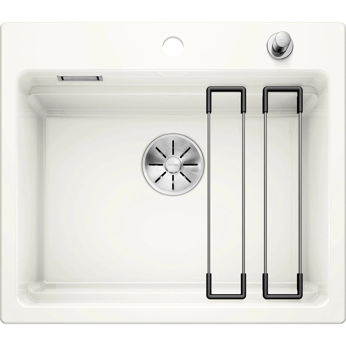En innovativ vask i høykvalitets keramisk porselen. En praktisk, dyp og stilren kjøkkenvask som kan brukes på 3 nivåer. Din gamle kjøkkenvask blir et fjernt minne sammenlignet med Blanco Etagon. Det unike konseptet med en stor vask, funksjonelt integrert mellomtrinn med stenger i rustfritt stål skaper enda et etasjeplan, plasser for eksempel skyllebollen eller gryter på mellomtrinnet eller still vasken som skal renne av, for å lette forberedelser, matlaging og servering av mat. Likevel som for å vaske opp og holde kjøkkenet ditt ryddig og rent. Etagon Rails inkludert.