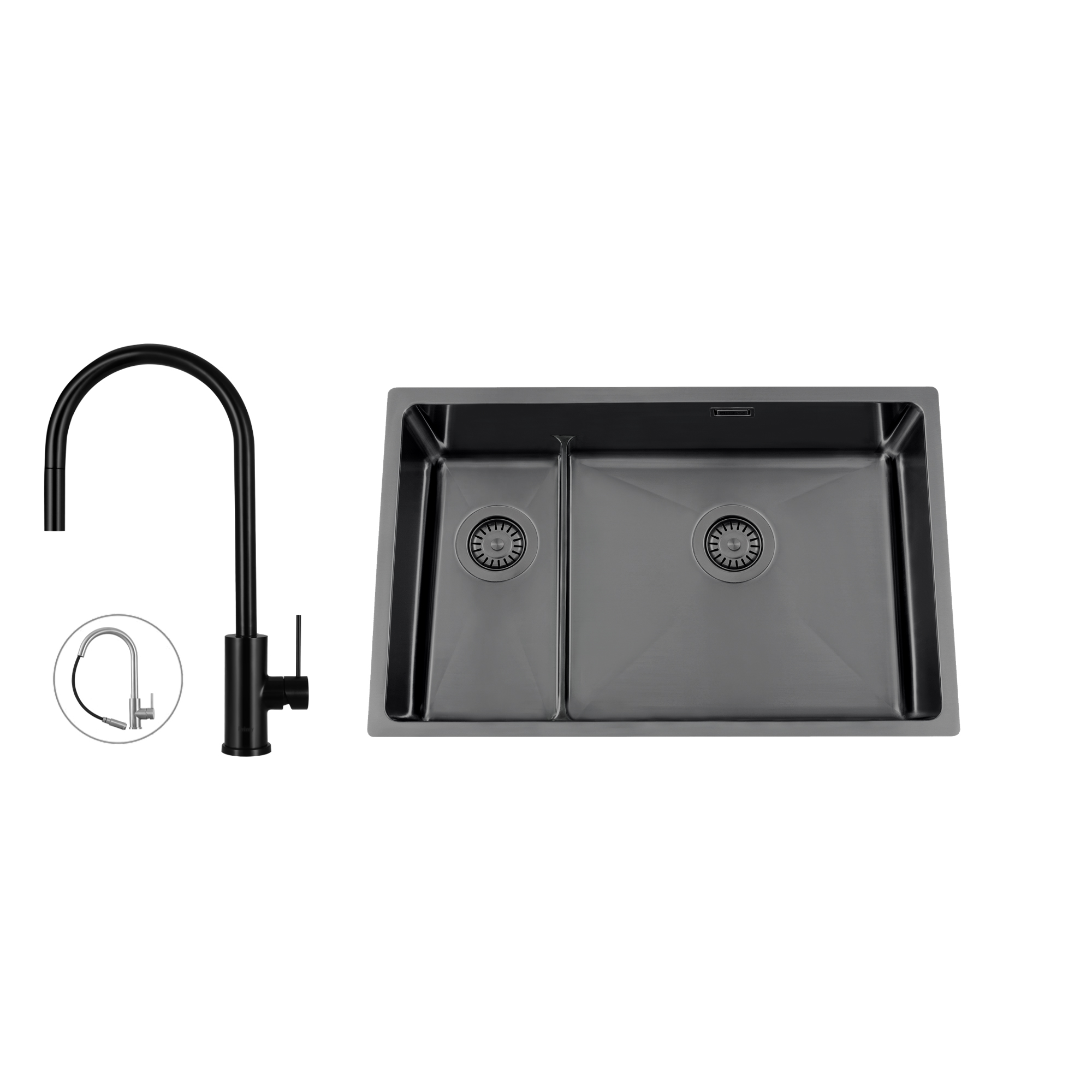 Kjøkkenvask Nordic TechTitan 73 KHX Nickel med Kjøkkenbatteri Steel Accent D