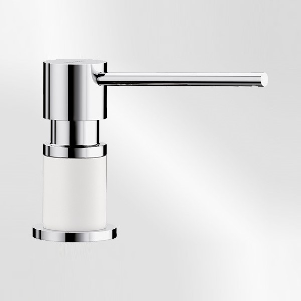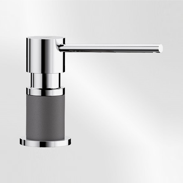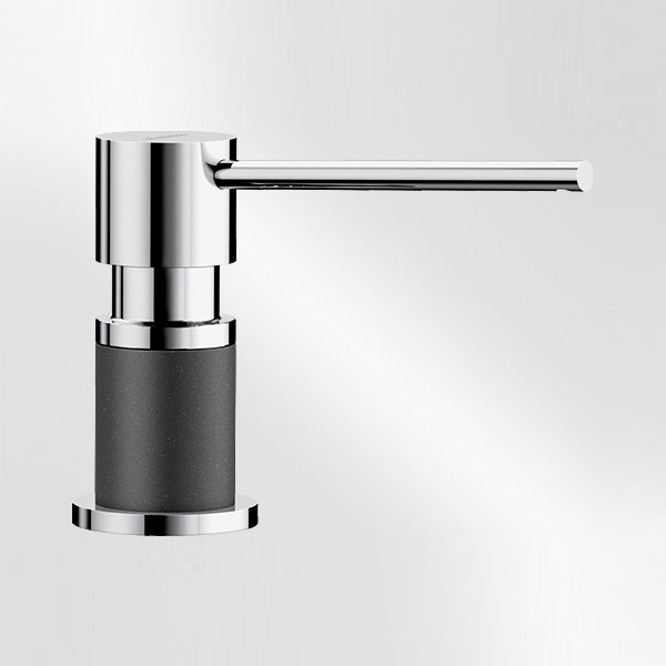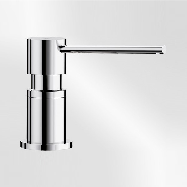 Såpedispenser Blanco Lato er en solid såpedispenser med en beholder på 300 ml. Dispenseren har enkel påfylling fra toppen, og såpen skal blandes med 1/3 vann. Hulltagning diameter er 35 mm.