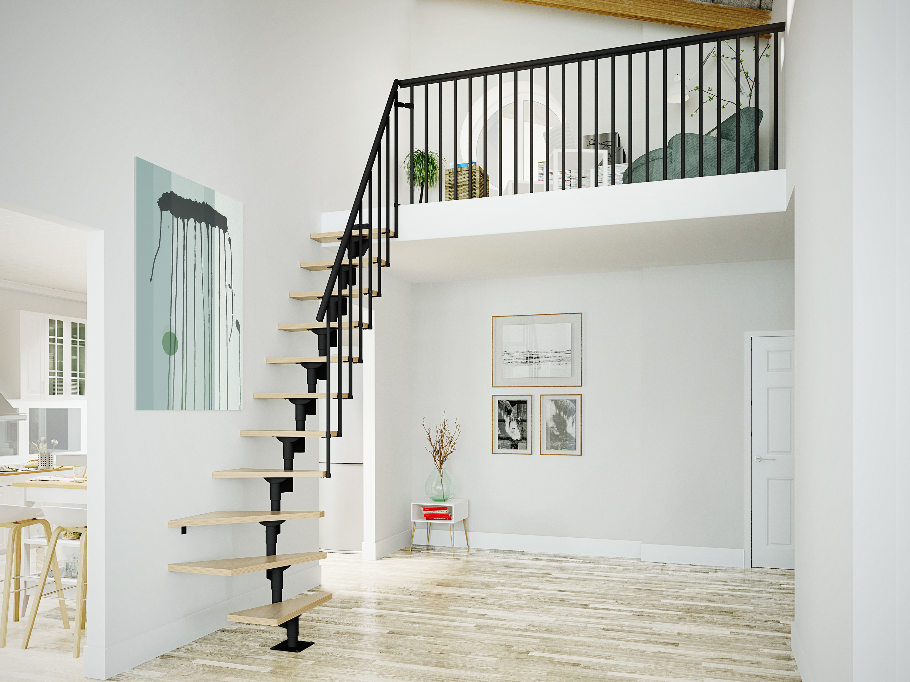 Plassbesparende Trapp Dolle Frankfurt Eik Hvitoljet 1/2-Sving Style6