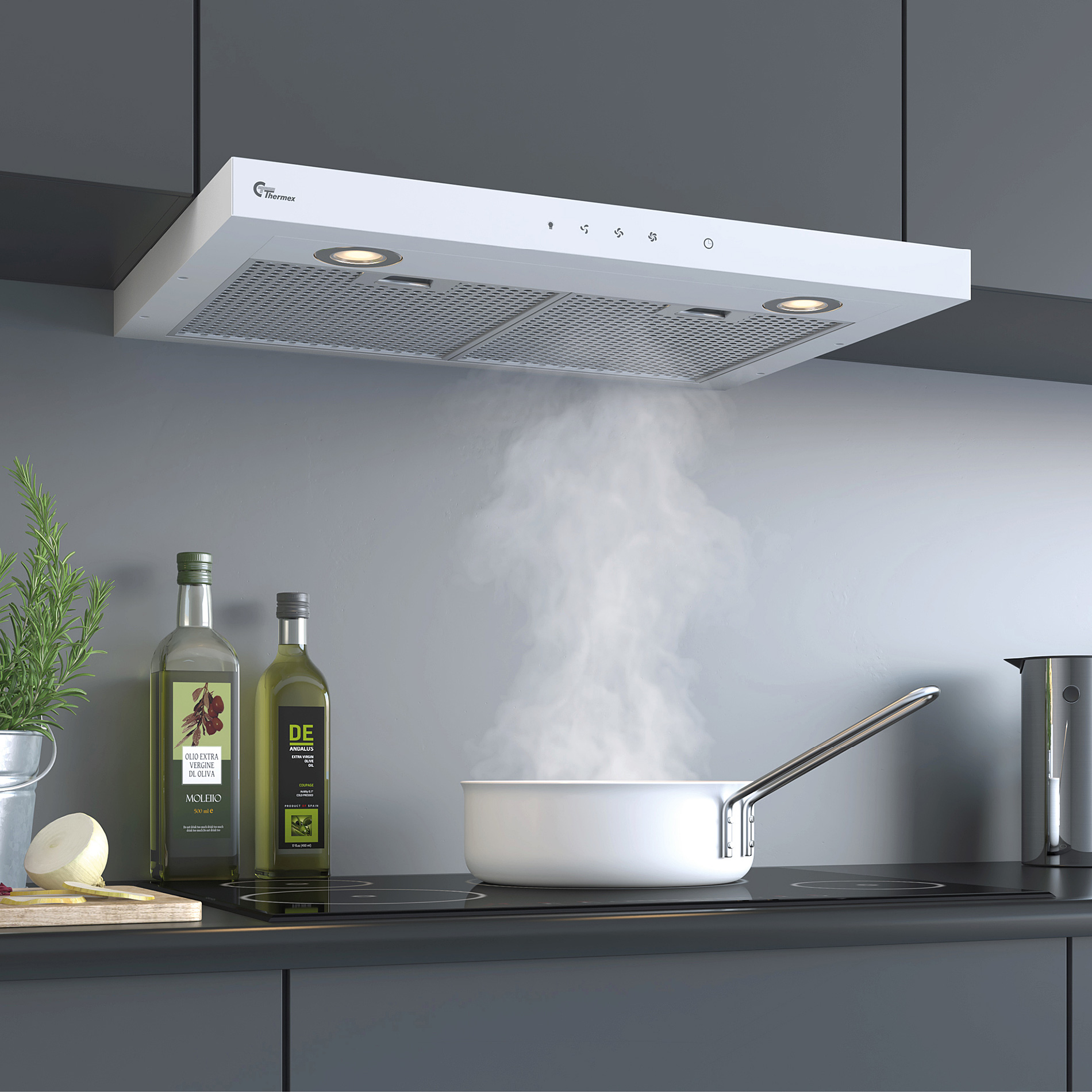 Alle våre toppmodeller av kjøkkenvifter er fra merket Thermex. De tilbyr ulike kjøkkenvifter som alle har innovative teknologier innebygget, samt brukervennlig funksjonalitet og gjennomtenkte detaljer. I tillegg er alle utstyrt med lekre overflater i et stilrent design.