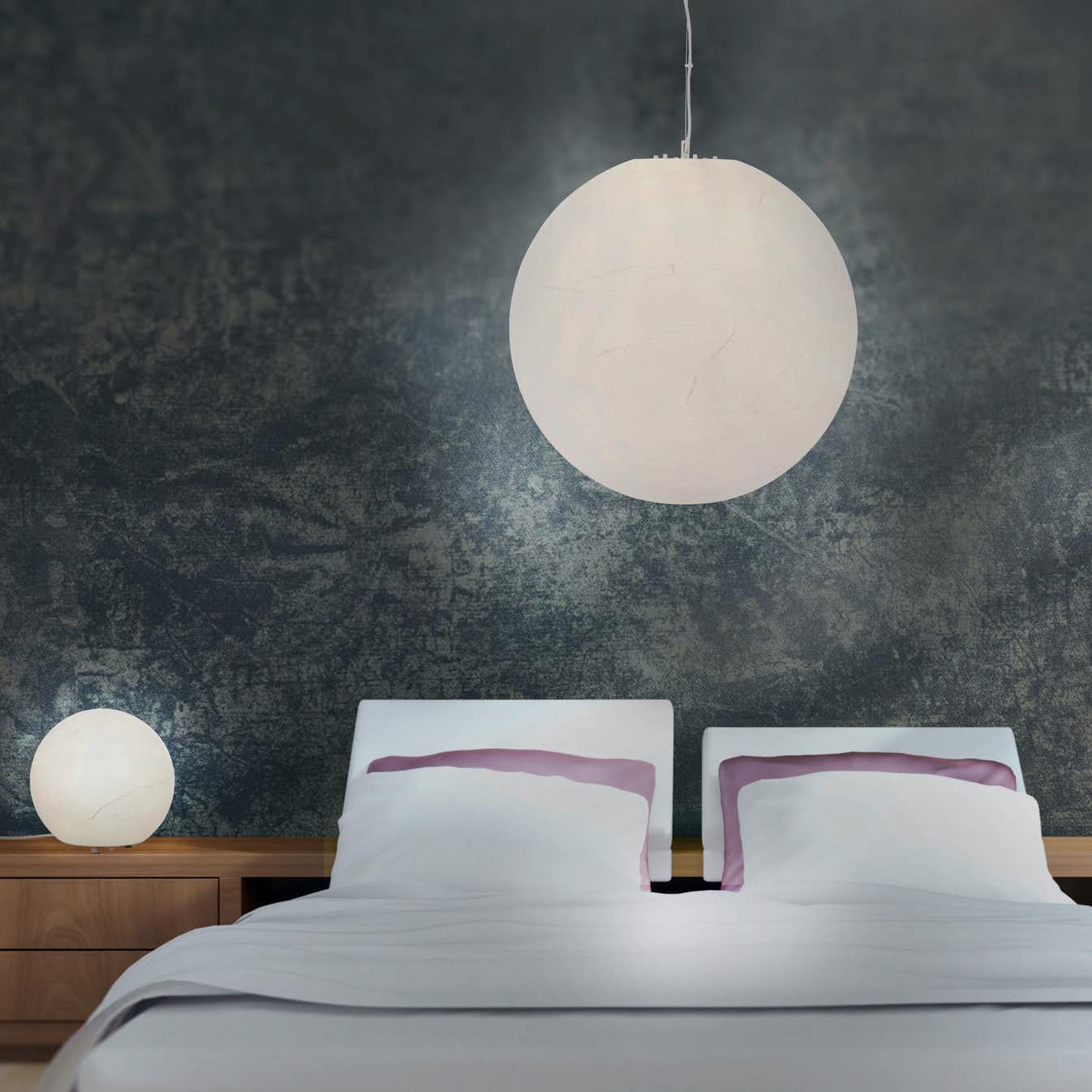 Den vakre taklampen og bordlampen Moon, fra Aneta