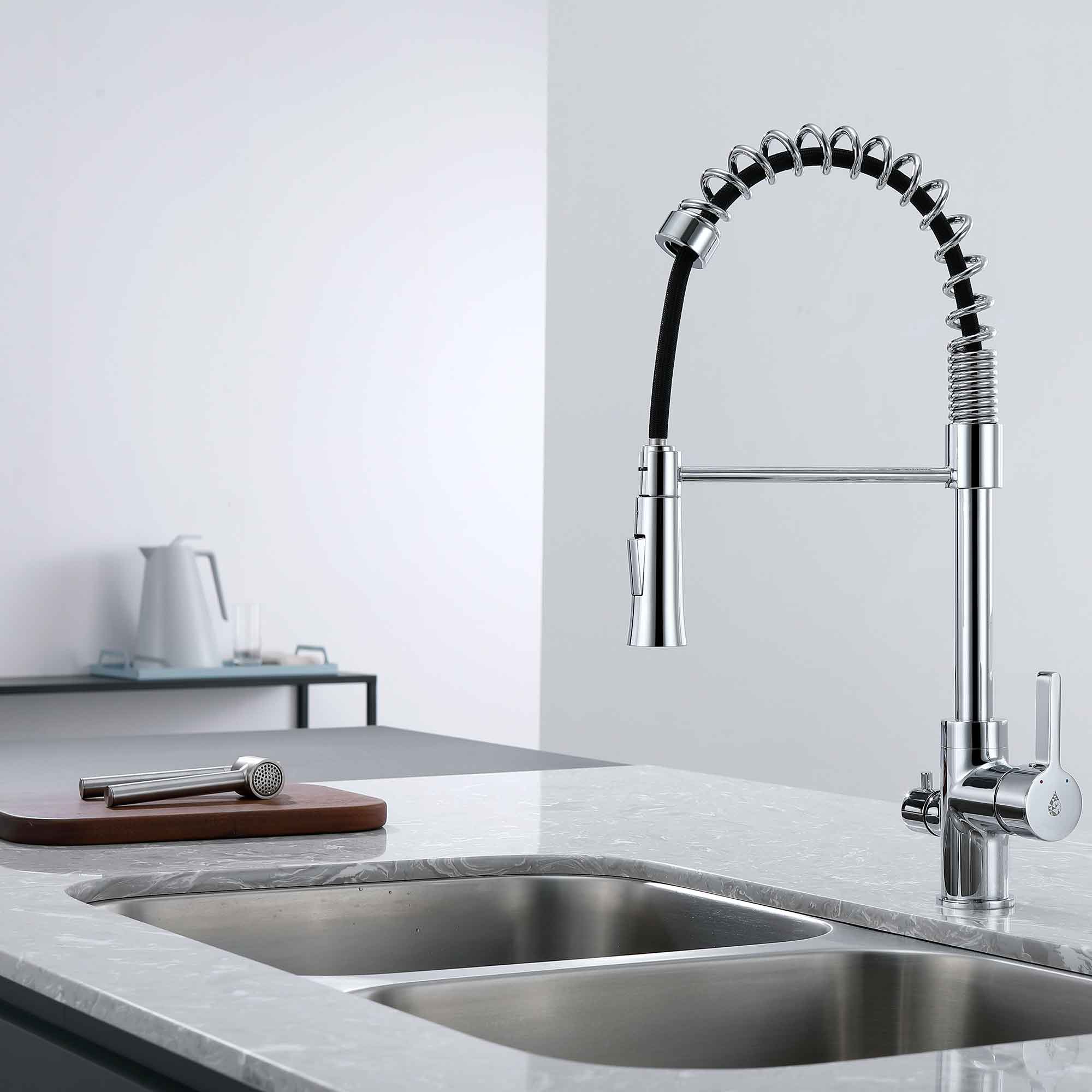ønsker en ekstra høy kjøkkenkran med uttrekkbar tut.