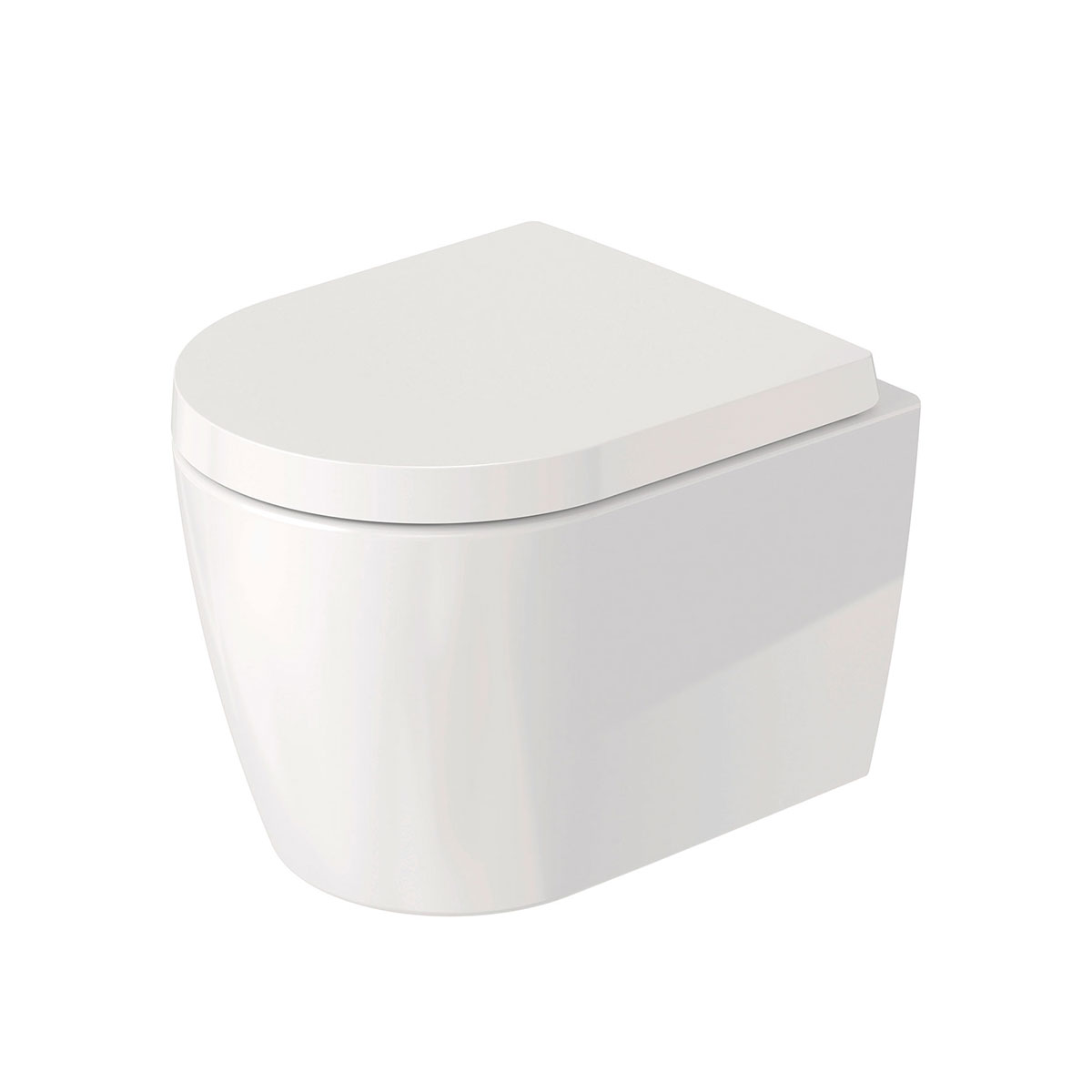 Kompakt vegghengt toalett med myktstengende hardt sete i hvit farge. Ingen spylekant gir bedre hygiene. Leveres med Durafix for skjult montering. WC-fixtur og spyleknapp kjøpes separat.