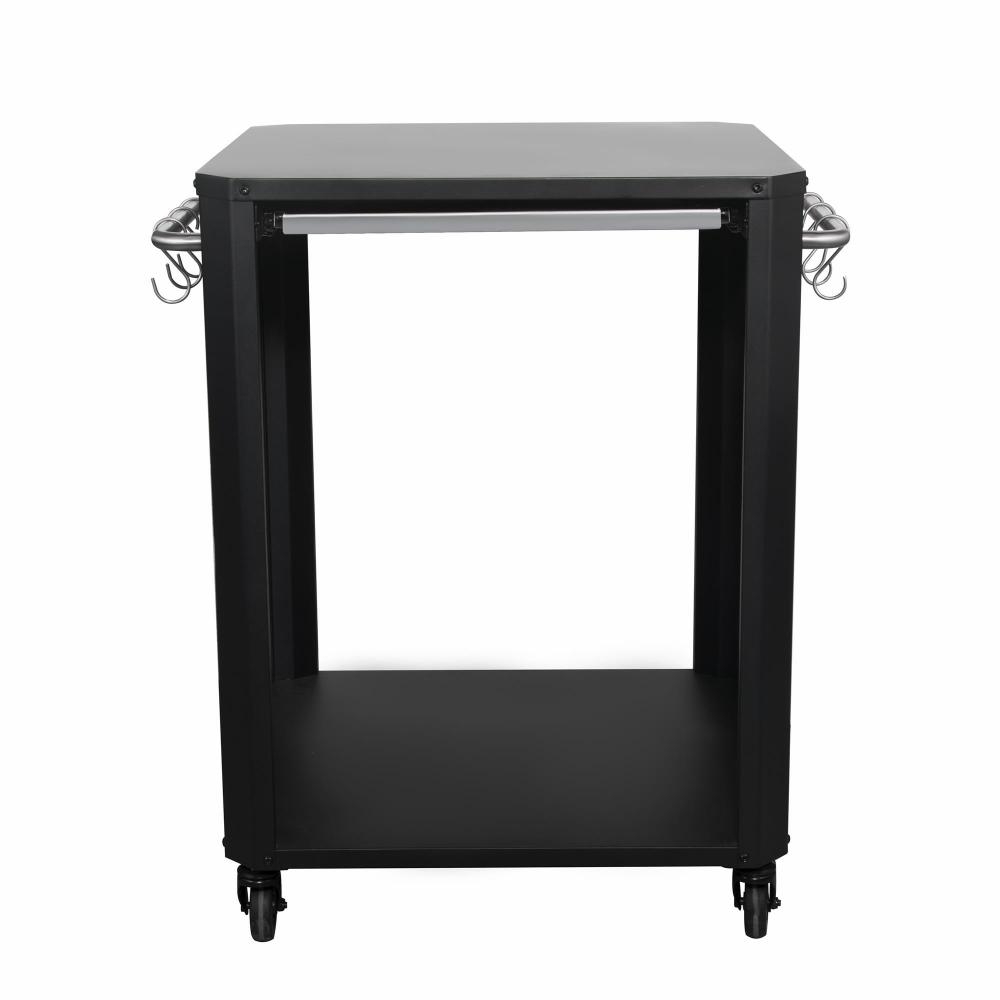 Utebord til pizzaovnen fra Cozze. Bordet er utstyrt med 2 elegante sidehåndtak med 6 S-kroker i rustfritt stål, perfekt til opphenging av pizzaspaden og pizza-skjærebrettet. Praktisk for oppbevaring av utstyr og annet du trenger for å lage den perfekte pizzaen!
